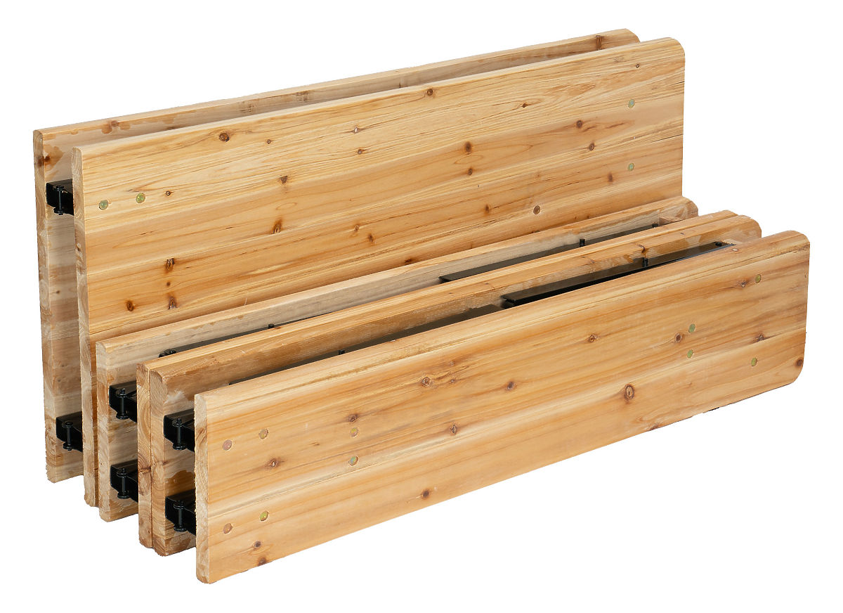 Usage : extérieur, jardin | Matériau : acier, bois | Couleur de l'assise/plateau : bois de sapin