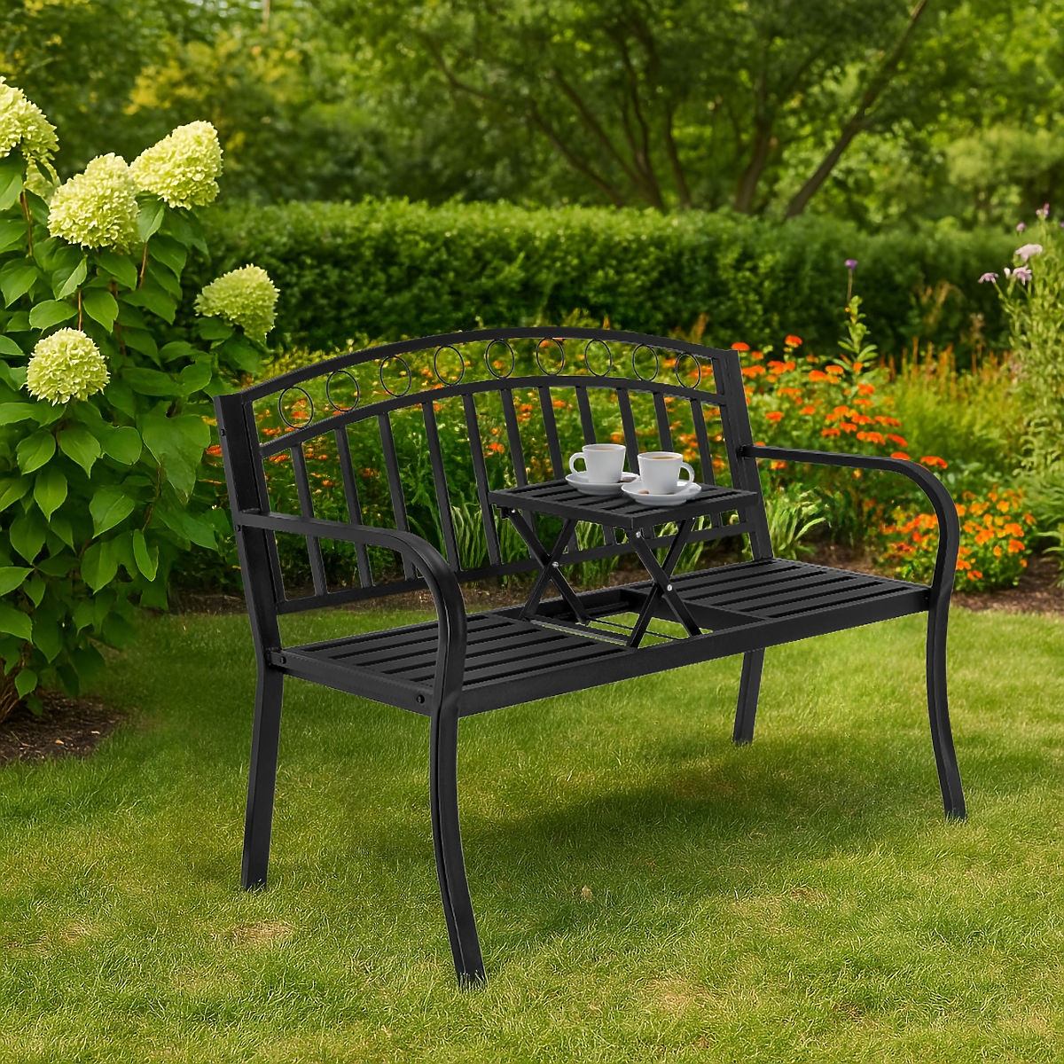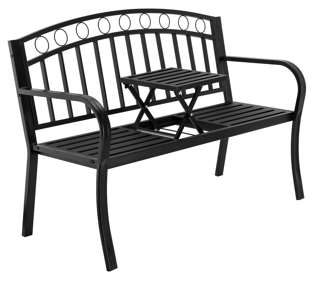 Le banc Banco est la parfaite alliance entre design moderne et fonctionnalité. Grâce à sa table intégrée et dépliable, vous pouvez savourer une tasse de café ou un livre. La structure en acier garantit stabilité et durabilité, tandis que le noir classique s'intègre dans tout espace de jardin ou de terrasse.