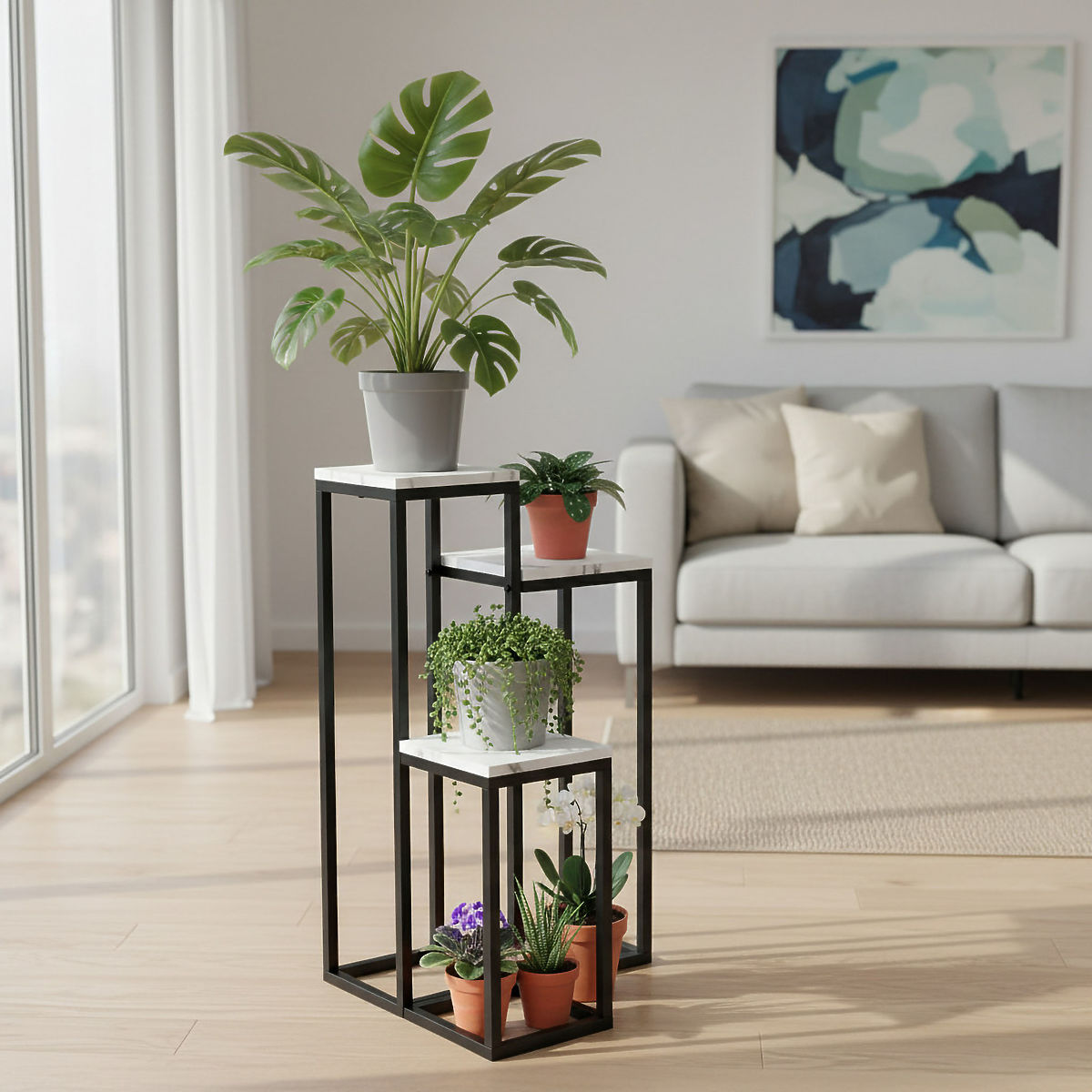 ☘️Support pour plantes en métal Munir Marbre Blanc – Élégance et fonctionnalité réunies☘️