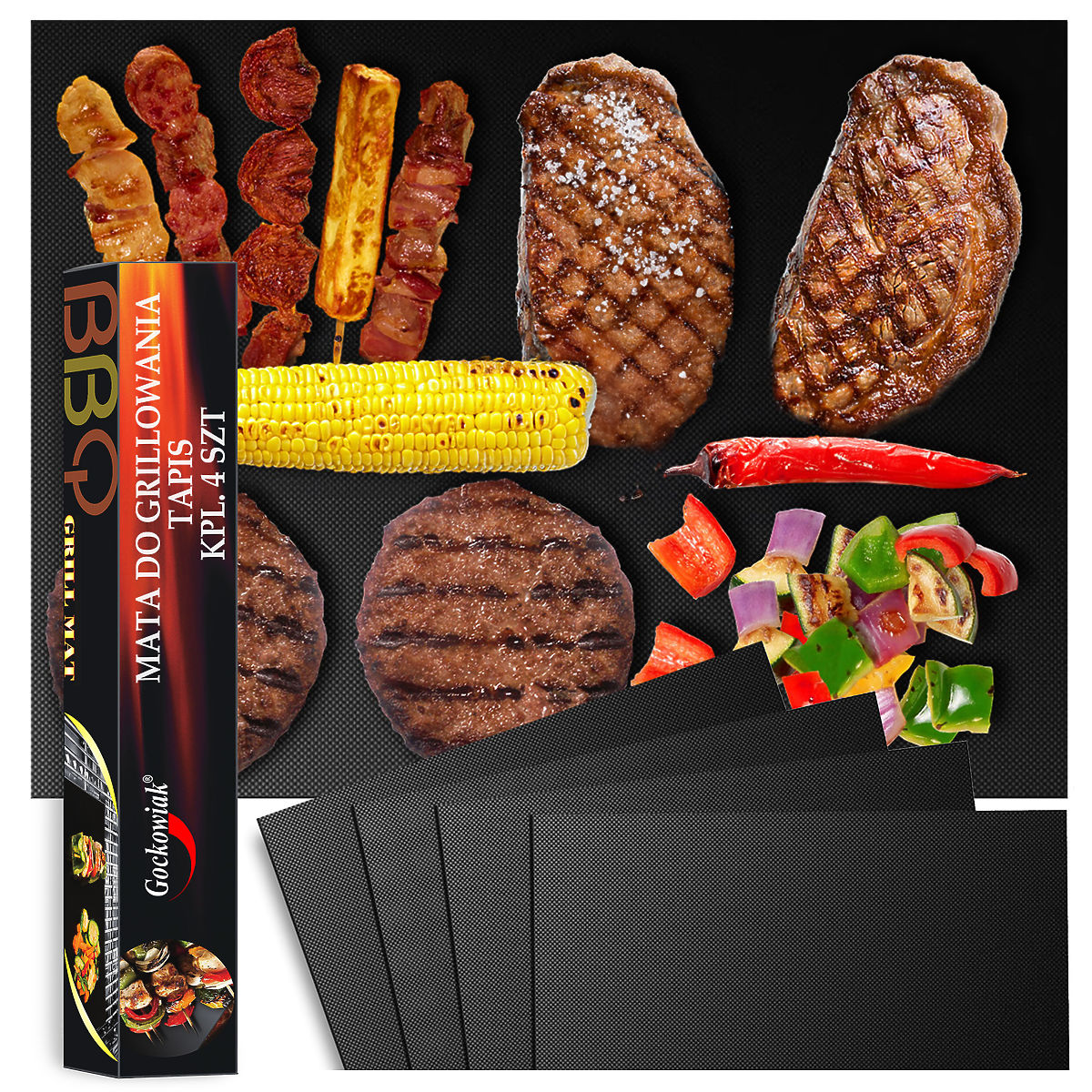 Votre assistant indispensable en cuisine et au barbecue ! Cet ensemble de 4 tapis en téflon assure confort, propreté et cuisson saine sans graisse. Idéal pour griller viandes, poissons, légumes et cuire au four. Grâce à sa résistance aux hautes températures (jusqu'à 260°C) et à la possibilité de découpe, le tapis s'adapte à toutes les grilles et plaques. Le produit est réutilisable et facile à nettoyer – lavable au lave-vaisselle ou à la main.