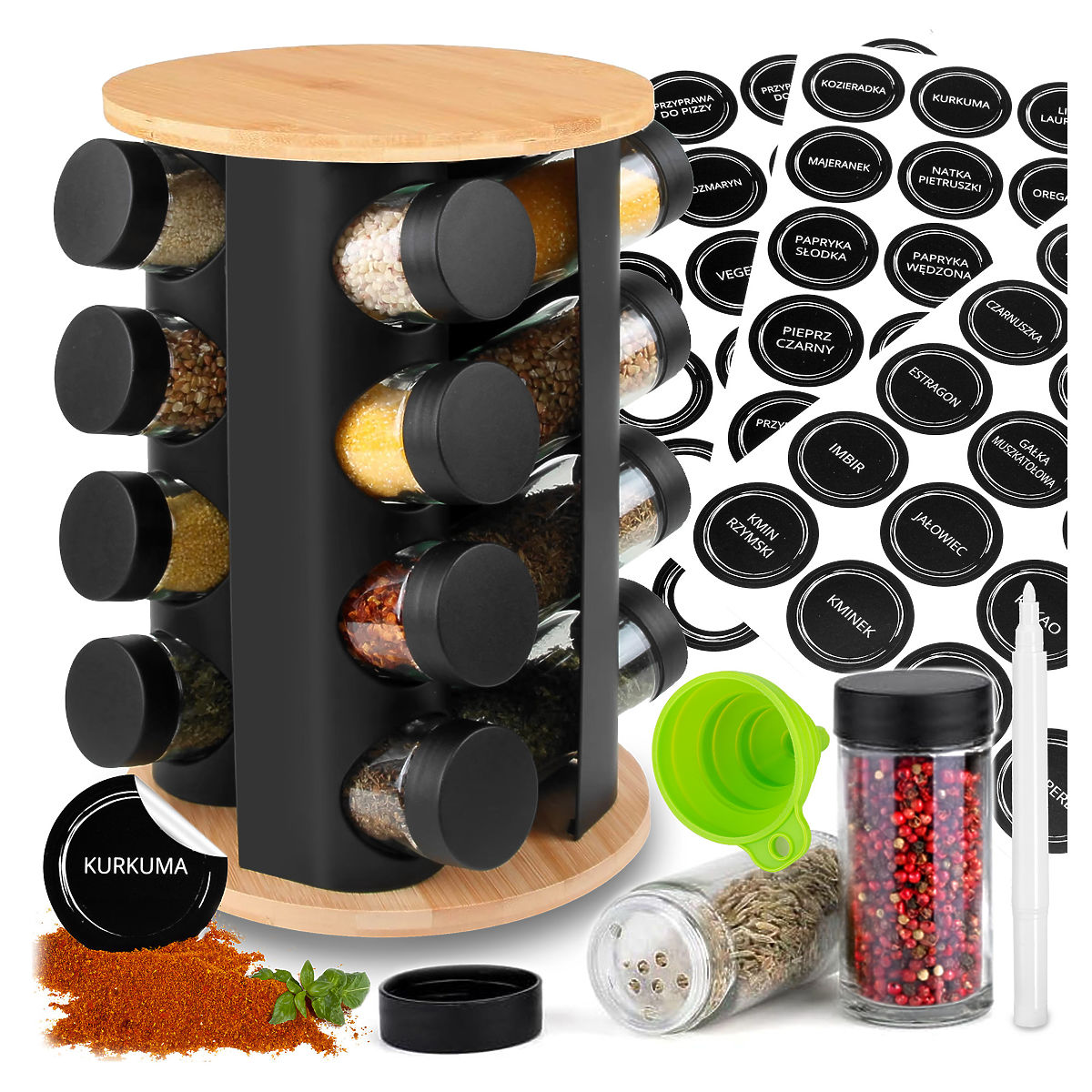 Support rotatif pour épices ROMERO 16 bocaux + 72 autocollants