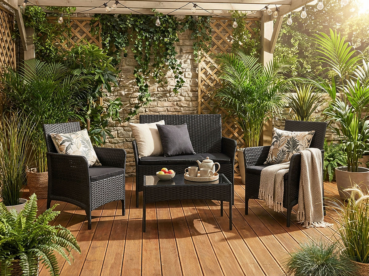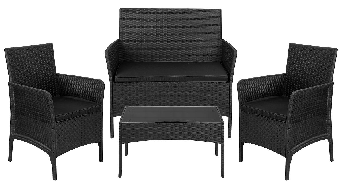 Ensemble de mobilier de jardin CAMELIA noir avec coussins noirs