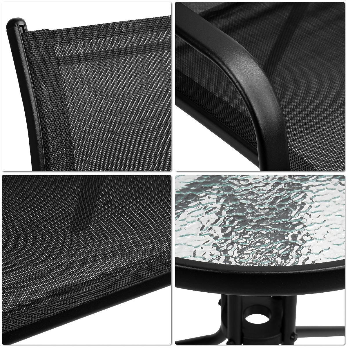 Matériau de l'assise : textilène 2×1, 520 g/m²