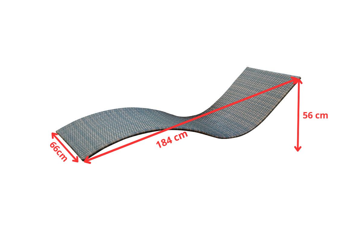 Dimensions d'une chaise longue : longueur : 184 cm, largeur : 66 cm, hauteur : 56 cm. La chaise longue est envoyée sur 1 palette de dimensions 80x60x200 cm, poids 30 kg.