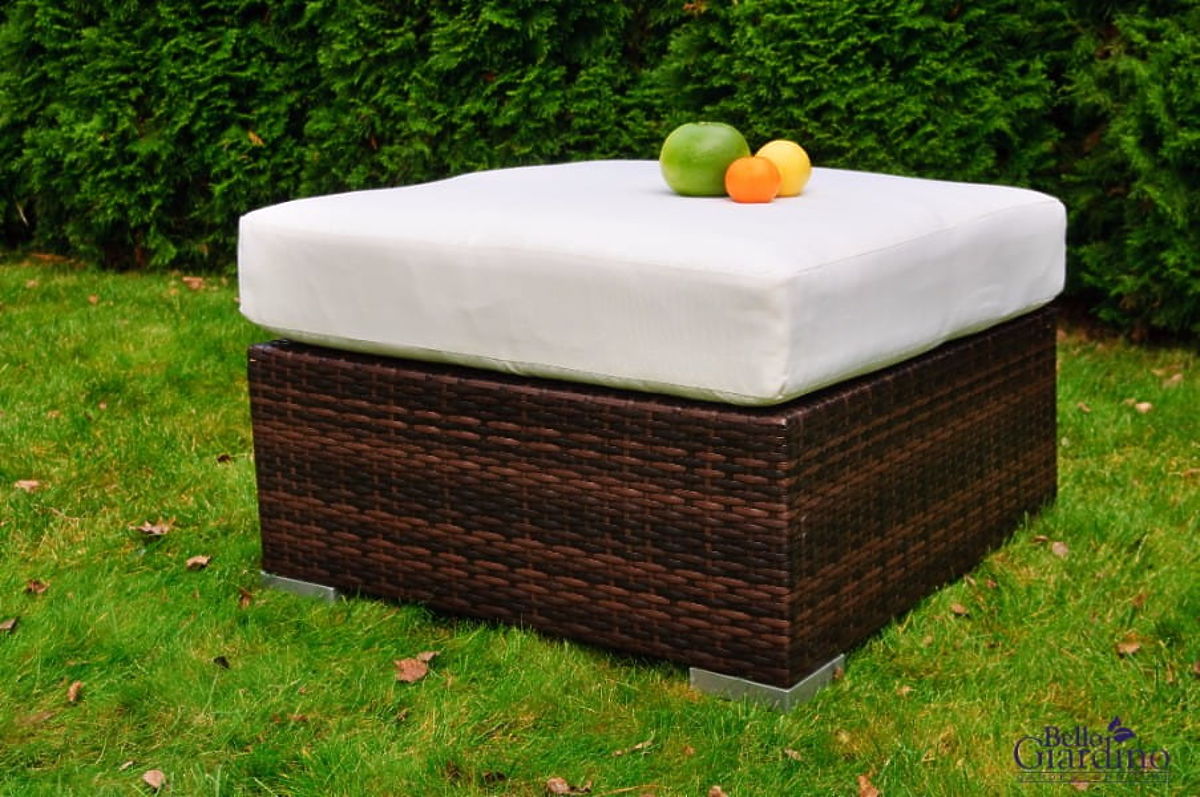 Fabriqué en résine tressée synthétique de haute qualité, ce pouf s'intègre parfaitement dans tout jardin, terrasse ou balcon. Design moderne et élégance. Le matériau dont est fait le pouf résiste parfaitement aux conditions météorologiques changeantes - il est résistant à la pluie, au gel et aux rayons UV. Un coussin moelleux augmente le confort de repos. Le pouf se présente parfaitement comme un meuble autonome, il peut également être utilisé pour agrandir des ensembles de jardin modulaires Bello Giardino. Couleur du pouf : brun foncé, non uniforme Tressage : résine tressée 7-8mm x 1,2mm, structure lisse Structure : aluminium 1 x pouf : longueur : 70 cm largeur : 70 cm hauteur : 30 cm Hauteur de l'assise : 30 cm + 12 cm de coussin. Le pouf est expédié dans 1 carton de dimensions 72x72x42 cm, poids 10 kg Possibilité de confectionner un coussin sur commande individuelle : https://www.bg-meble.pl/pl/p/Usluga-Krawiecka-Poduszki-Na-Zamowienie-/742 Possibilité de confectionner une housse de coussin sur commande individuelle : https://www.bg-meble.pl/pl/p/Usluga-Krawiecka-Poszewki-Na-Zamowienie/743 Couleur du pouf : brun foncé, non uniforme Tressage : résine tressée 7-8mm x 1,2mm, structure lisse Structure : aluminium 1 x pouf : longueur : 70 cm largeur : 70 cm hauteur : 30 cm Hauteur de l'assise : 30 cm + 12 cm de coussin. Pour que le mobilier conserve son apparence le plus longtemps possible, nous recommandons d'acheter une housse de protection. La housse de couleur gris foncé est d'une seule pièce et possède un cordon de serrage en bas passé par des œillets métalliques. Toutes les housses sont faites sur mesure et le délai de réalisation est d'environ 14 jours ouvrables.