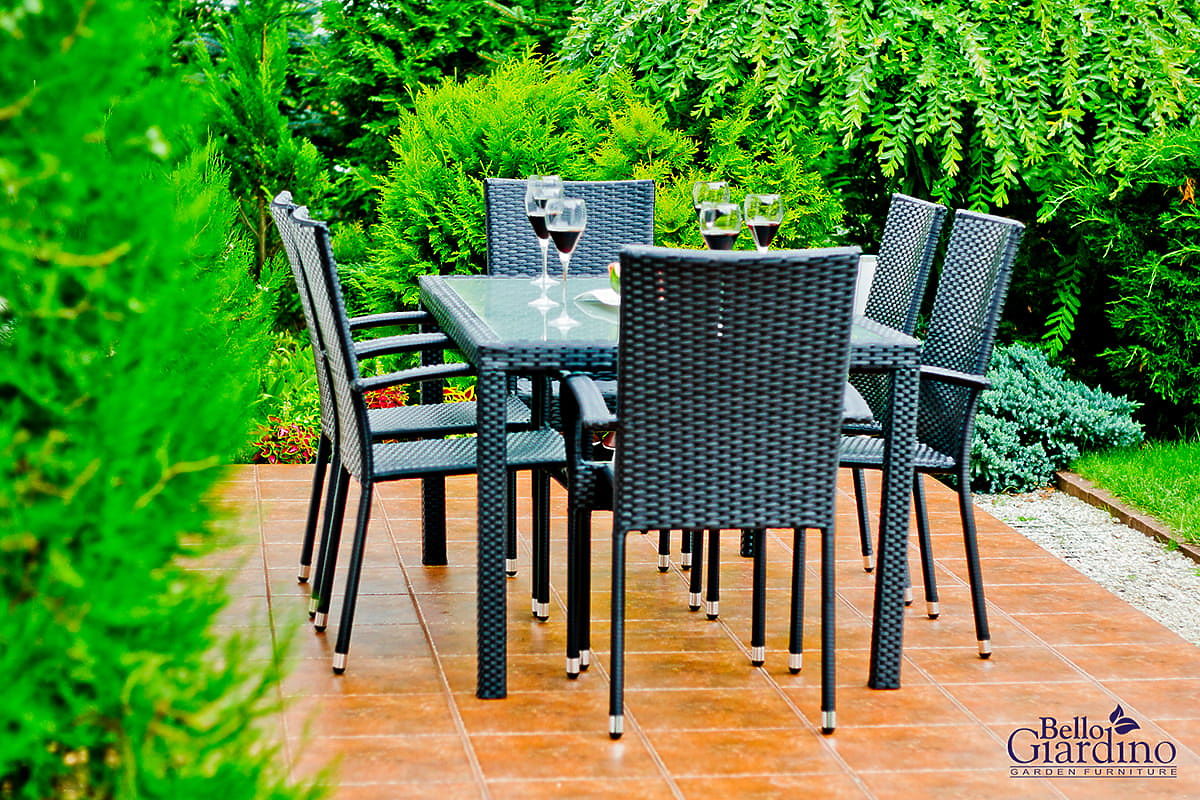 Mobilier de jardin AVVICENTE en résine tressée, élégant et fonctionnel, couleur noire. .. plus