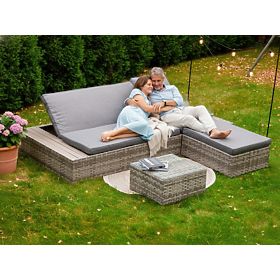 Le set de mobilier de jardin DIABOLICO incarne la quintessence de la modernité et de la fonctionnalité, offrant une combinaison parfaite d'aluminium de haute qualité et de résine tressée. Cette combinaison unique de matériaux assure non seulement une résistance exceptionnelle aux pluies, au gel et aux températures extrêmes, mais confère également un style exceptionnel. Le mobilier de jardin, composé d'un pouf, d'une table et d'un lit pouvant également servir de canapé, est la solution parfaite pour ceux qui apprécient à la fois l'esthétique et la praticité. Les dossiers réglables permettent de transformer rapidement et facilement le canapé en lit, augmentant ainsi la polyvalence de l'ensemble. Le set de mobilier de détente DIABOLICO, avec son tressage large dans des nuances de gris et ses coussins élégamment finis, n'est pas seulement un meuble, mais aussi une œuvre d'art qui ajoute classe et caractère unique à tout espace extérieur. Couleur du set DIABOLICO : gris chiné, tressage non uniforme : résine tressée 15mm x 1,2mm, structure lisse. Structure du mobilier : aluminium. Set composé de 3 éléments : 1 x lit/canapé : longueur : 227 cm, largeur : 114 cm, hauteur : 30 cm, lit pour 2 personnes : réglage du dossier du lit en 3 positions, canapé pour 3 personnes : réglage du dossier du canapé en 4 positions. Hauteur maximale avec les 3 dossiers du canapé relevés (à partir du siège) : 42 cm. 1 x pouf : longueur : 78 cm, largeur : 58 cm, hauteur : 30 cm. 1 x table (avec plateau en verre transparent de sécurité de 5mm) : longueur : 54 cm, largeur : 54 cm, hauteur : 30 cm. Hauteur du siège du canapé/lit et du pouf : 30 cm + 8 cm de coussin. Le lit est expédié dans 1 carton de dimensions 230x32x117 cm, poids 35 kg. Coussins de couleur grise inclus dans le set. Tous ont des housses amovibles avec fermeture éclair, fabriquées en matériau d'extérieur (100% polyester), lavables à basse température. Les housses de coussin sont confectionnées en tissu de haute qualité recouvert de téflon, les protégeant de l'humidité. Le rembourrage des coussins est en mousse d'ameublement de haute qualité (mi-dure - T25), empêchant les déformations. Épaisseur des coussins : 8 cm. La résine tressée est résistante aux conditions météorologiques défavorables, mais pour profiter encore plus longtemps de l'apparence inchangée du mobilier, nous recommandons l'achat d'une housse de protection. La housse de couleur gris foncé est d'une seule pièce et possède un cordon de serrage en bas, entrelacé avec des œillets métalliques. Toutes les housses sont fabriquées sur commande et le délai de réalisation est d'environ 21 jours ouvrables. Imaginez un mobilier de jardin qui dépasse vos attentes à tous égards – de la durabilité au design. C'est BELLO GIARDINO, où chaque détail compte et où le luxe rencontre la fonctionnalité : Qualité indestructible : Notre résine synthétique est la garantie que le mobilier durera des années sans perdre de sa beauté ou de sa durabilité. Résistance aux intempéries : Notre mobilier résiste aux conditions météorologiques les plus difficiles, du soleil brûlant aux hivers glacials, tout en restant toujours beau. Confort luxueux : Des coussins épais et doux invitent à la détente, offrant un confort difficile à trouver ailleurs. Légèreté et robustesse : La structure en aluminium combine le meilleur des deux mondes – elle est légère, mais extrêmement stable. Un design qui séduit : Chaque élément de notre mobilier a été conçu en tenant compte de l'esthétique et de la fonctionnalité, pour s'adapter à tout environnement. Que vous soyez amateur de minimalisme ou que vous appréciez les arrangements riches et élégants, notre mobilier répondra à vos attentes, dépassant les limites de la fonctionnalité et de l'esthétique ordinaires. Nous garantissons que même les clients les plus exigeants ne résisteront pas au confort et au style offerts par BELLO GIARDINO. Transformez votre jardin, terrasse ou balcon en une oasis de relaxation et d'élégance que vous avez toujours voulu avoir. N'attendez pas, découvrez BELLO GIARDINO dès aujourd'hui et transformez vos espaces extérieurs en lieux dont vous avez toujours rêvé. Photos des clients