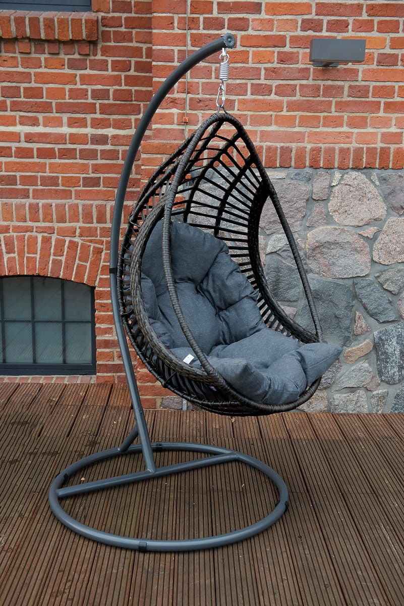 Fauteuil suspendu BELLISSIMO (Fauteuil + cadre) en technorattan gris, housse GRATUITE