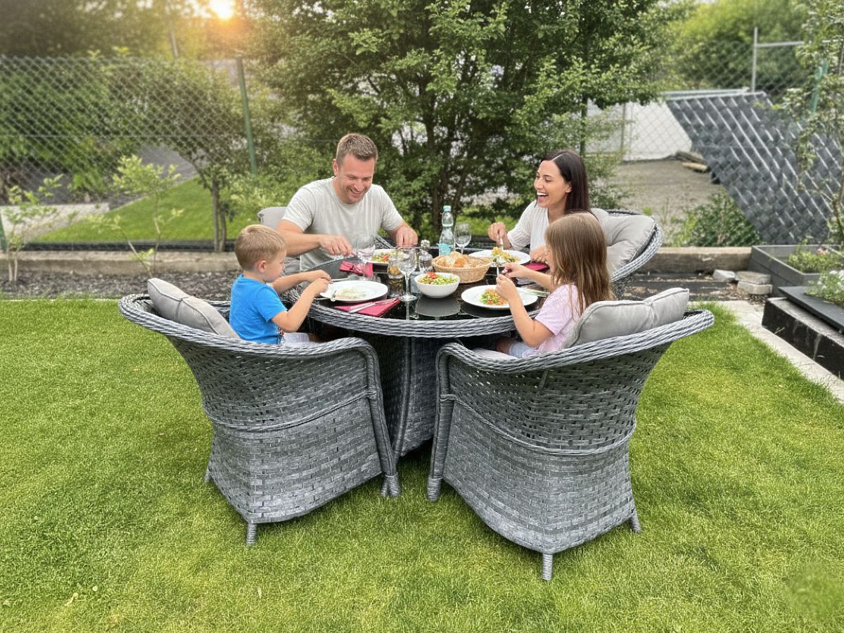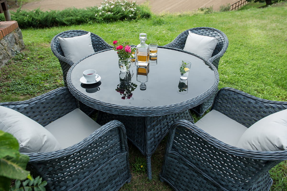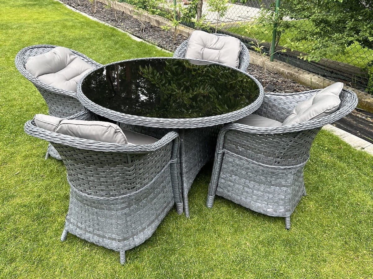L'ensemble de salle à manger MODERNO est la quintessence du design moderne et d'une approche innovante de l'aménagement intérieur. Il présente un design original qui se distingue des solutions standard et offre non seulement une esthétique, mais aussi une durabilité inégalée grâce à l'utilisation de résine tressée de haute qualité. Sa résistance absolue aux intempéries fait de cet ensemble un choix idéal tant pour les intérieurs que pour les espaces extérieurs. En choisissant l'ensemble MODERNO, vous investissez dans un mobilier qui non seulement est beau, mais est également conçu pour une utilisation à long terme, répondant aux attentes des clients les plus exigeants à la recherche d'une combinaison unique de fonctionnalité, de durabilité et de style contemporain. Couleur de l'ensemble : gris chiné, non uniforme Couleur des coussins : gris foncé Tressage : résine tressée plate 17 mm x 1,2 mm et résine tressée ronde, structure lisse Structure : acier Ensemble composé de 5 éléments : 4 x fauteuil : largeur : 56 cm profondeur : 70 cm hauteur : 81 cm 1 x table (avec plateau en verre noir de sécurité de 5 mm) : diamètre : 120 cm hauteur : 74 cm Autres dimensions : Hauteur de l'assise du fauteuil : 38 cm + 5 cm de coussin Hauteur du dossier depuis l'assise : 50 cm Largeur des accoudoirs et du dossier : 5 cm Largeur et profondeur de l'assise : 52 x 52 cm L'ensemble est expédié sur 1 palette de dimensions 120x100x210 cm, poids 70 kg Coussins en gris foncé pour les assises inclus dans le prix de l'ensemble (4 pièces) Tous ont des housses amovibles avec fermeture éclair, fabriquées en matériau extérieur (100% polyester), lavables à basse température. Les housses de coussins sont confectionnées dans un tissu de haute qualité recouvert de téflon, les protégeant de l'humidité. Le rembourrage des coussins est en mousse d'ameublement de haute qualité (dureté moyenne - T25), évitant les déformations. Épaisseur des coussins : 5 cm. Possibilité de confectionner des coussins sur commande individuelle pour cet ensemble : https://www.bg-meble.pl/pl/p/Usluga-Krawiecka-Poduszki-Na-Zamowienie-/742 Possibilité de confectionner des housses de coussins sur commande individuelle pour cet ensemble : https://www.bg-meble.pl/pl/p/Usluga-Krawiecka-Poszewki-Na-Zamowienie/743 Pour conserver l'apparence inchangée du mobilier plus longtemps, nous recommandons d'acheter une housse de protection. La housse en gris foncé est d'une seule pièce et possède un cordon de serrage en bas. Toutes les housses sont fabriquées sur mesure et le délai de réalisation est d'environ 14 jours ouvrables. Imaginez un mobilier de jardin qui dépasse vos attentes dans tous les domaines – de la durabilité au design. C'est BELLO GIARDINO, où chaque détail compte et où le luxe rencontre la fonctionnalité : Qualité intemporelle : Notre résine tressée garantit que le mobilier durera des années sans perdre de sa beauté ou de sa durabilité. Résistance aux intempéries : Notre mobilier résiste aux conditions météorologiques les plus difficiles, du soleil brûlant aux hivers glacials, tout en restant magnifique. Confort luxueux : Des coussins épais et moelleux invitent à la détente, offrant un confort difficile à trouver ailleurs. Légèreté et robustesse : La structure en aluminium combine le meilleur des deux mondes – elle est légère, mais extrêmement stable. Un design qui séduit : Chaque élément de notre mobilier a été conçu en tenant compte de l'esthétique et de la fonctionnalité, pour s'adapter à tous les environnements. Que vous soyez amateur de minimalisme ou que vous appréciez les aménagements riches et élégants, notre mobilier répondra à vos attentes, dépassant les limites de la simple fonctionnalité et esthétique. Nous garantissons que même les clients les plus exigeants ne pourront résister au confort et au style offerts par BELLO GIARDINO. Transformez votre jardin, terrasse ou balcon en une oasis de détente et d'élégance que vous avez toujours souhaitée. N'attendez plus, découvrez BELLO GIARDINO dès aujourd'hui et transformez vos espaces extérieurs en lieux de rêve. Photos de nos clients