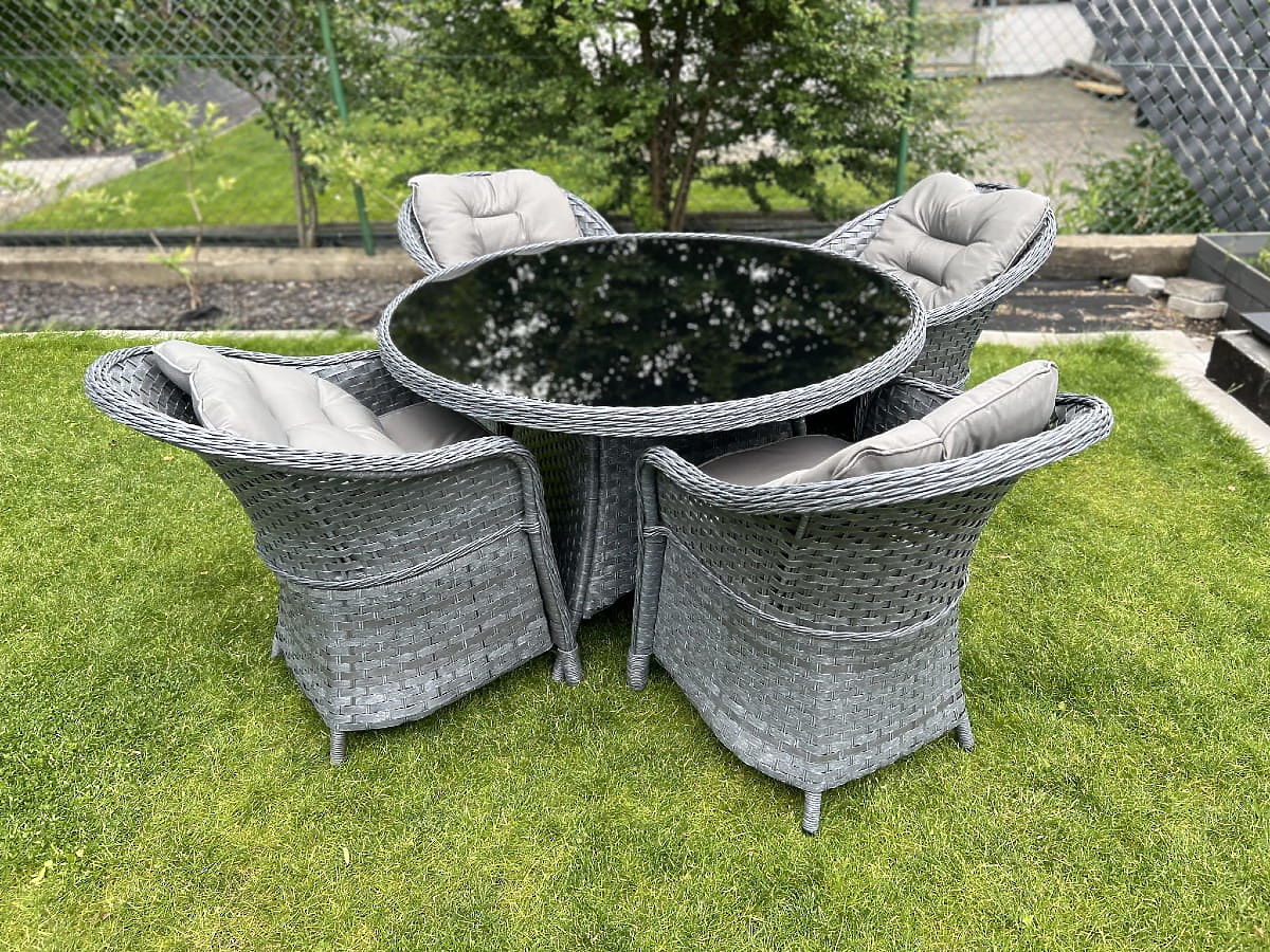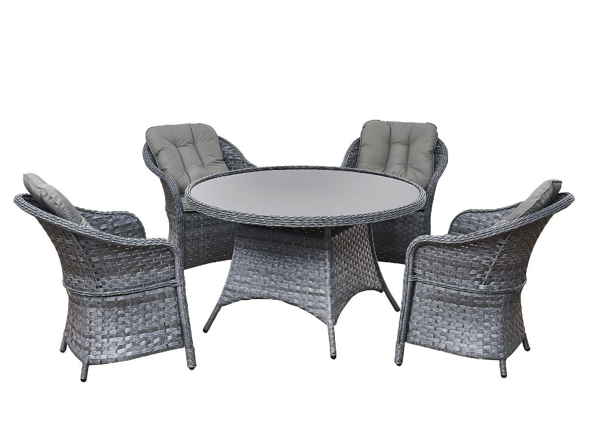 Ensemble de salle à manger en résine tressée (table ronde + 4 fauteuils) MODERNO gris