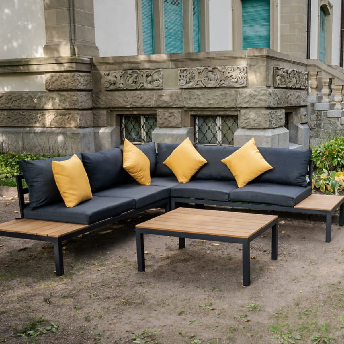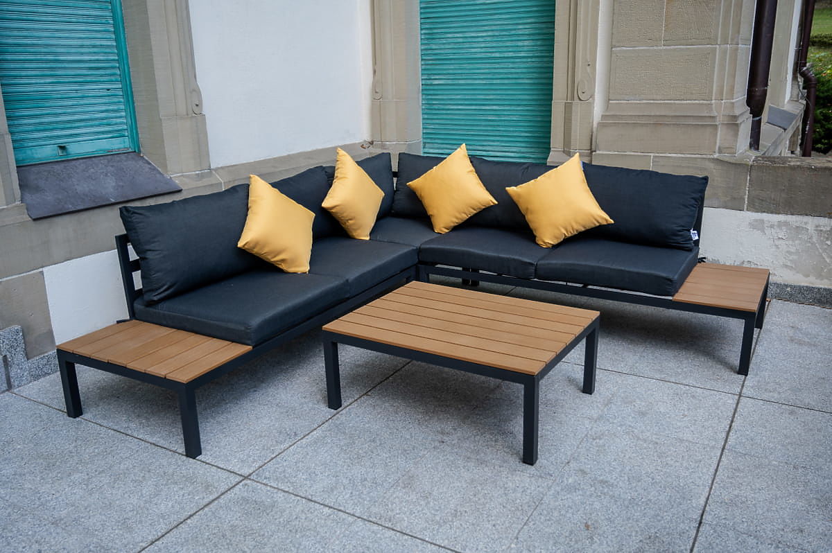 Grand ensemble d'angle en aluminium avec table MASSIMO noir