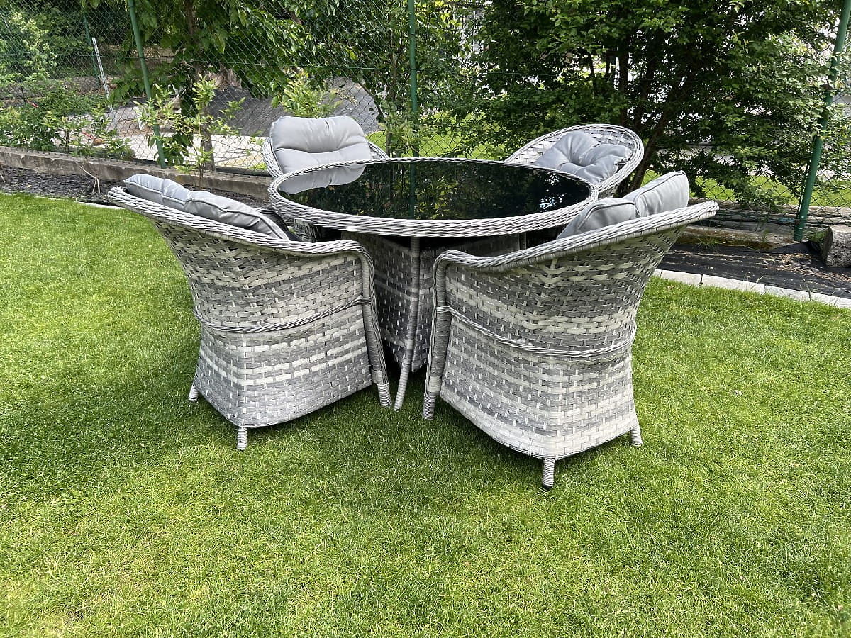 L'ensemble de mobilier de table MODERNO est synonyme de modernité et d'élégance dans l'aménagement de l'espace. Il se distingue par un design inhabituel qui s'adapte aux tendances les plus modernes du design tout en offrant une durabilité et une résistance exceptionnelles grâce à l'utilisation de résine tressée synthétique de la plus haute qualité. Les fauteuils et la table de cette collection sont entièrement résistants aux intempéries, ce qui fait de l'ensemble MODERNO un excellent choix tant pour une utilisation intérieure qu'extérieure. Cet ensemble de mobilier exceptionnel a été conçu pour les clients les plus exigeants qui recherchent une combinaison de fonctionnalité, de durabilité et de design moderne. Couleur de l'ensemble : gris clair chiné, non uniforme Couleur des coussins : gris foncé Tressage : résine tressée plate 17mm x 1,2mm et résine tressée ronde, structure lisse Structure : acier L'ensemble se compose de 5 éléments : 4 x fauteuil : largeur : 56 cm profondeur : 70 cm hauteur : 81 cm 1 x table (avec plateau en verre noir de sécurité de 5mm) : diamètre : 120 cm hauteur : 74 cm Autres dimensions : Hauteur de l'assise du fauteuil : 38 cm + 5 cm de coussin Hauteur du dossier depuis l'assise : 50 cm Largeur des accoudoirs et du dossier : 5 cm Largeur et profondeur de l'assise : 52 x 52 cm L'ensemble est expédié sur 1 palette de dimensions 120x100x210 cm, poids 70 kg Coussins gris foncé pour les assises inclus dans l'ensemble (4 pièces) Tous ont des housses amovibles à fermeture éclair, fabriquées en matériau d'extérieur (100% polyester), lavables à basse température. Les housses de coussins sont confectionnées dans un tissu de haute qualité enduit de téflon, qui les protège de l'humidité. Le rembourrage des coussins est en mousse d'ameublement de haute qualité (fermeté moyenne - T25), qui empêche les déformations. Épaisseur des coussins : 5 cm. Possibilité de confection de coussins sur mesure pour cet ensemble : https://www.bg-meble.pl/pl/p/Usluga-Krawiecka-Poduszki-Na-Zamowienie-/742 Possibilité de confection de housses de coussins sur mesure pour cet ensemble : https://www.bg-meble.pl/pl/p/Usluga-Krawiecka-Poszewki-Na-Zamowienie/743 Pour que le mobilier conserve son aspect le plus longtemps possible, nous recommandons l'achat d'une housse de protection. La housse gris foncé est d'une seule pièce et possède un cordon de serrage en bas. Toutes les housses sont confectionnées sur mesure et le délai de réalisation est d'environ 14 jours ouvrables. Imaginez un mobilier de jardin qui dépasse vos attentes à tous égards – de la durabilité au design. C'est BELLO GIARDINO, où chaque détail compte et où le luxe rencontre la fonctionnalité : Qualité intemporelle : Notre résine tressée synthétique garantit que le mobilier durera des années sans perdre de sa beauté ou de sa durabilité. Résistance aux intempéries : Notre mobilier résiste aux conditions météorologiques les plus difficiles, du soleil brûlant aux hivers glacials, tout en restant toujours beau. Confort luxueux : Des coussins épais et doux invitent à la détente, offrant un confort difficile à trouver ailleurs. Légèreté et solidité : La structure en aluminium combine le meilleur des deux mondes – elle est légère, mais extrêmement stable. Un design qui séduit : Chaque élément de notre mobilier a été conçu en tenant compte de l'esthétique et de la fonctionnalité, pour s'adapter à tout environnement. Que vous soyez amateur de minimalisme ou que vous appréciez les agencements riches et élégants, notre mobilier répondra à vos attentes, dépassant les limites de la fonctionnalité et de l'esthétique ordinaires. Nous garantissons que même les clients les plus exigeants ne résisteront pas au confort et au style offerts par BELLO GIARDINO. Transformez votre jardin, terrasse ou balcon en une oasis de détente et d'élégance que vous avez toujours voulu avoir. N'attendez pas, découvrez BELLO GIARDINO dès aujourd'hui et transformez vos espaces extérieurs en lieux dont vous avez toujours rêvé. Photos de nos clients