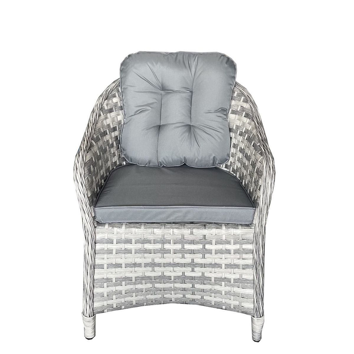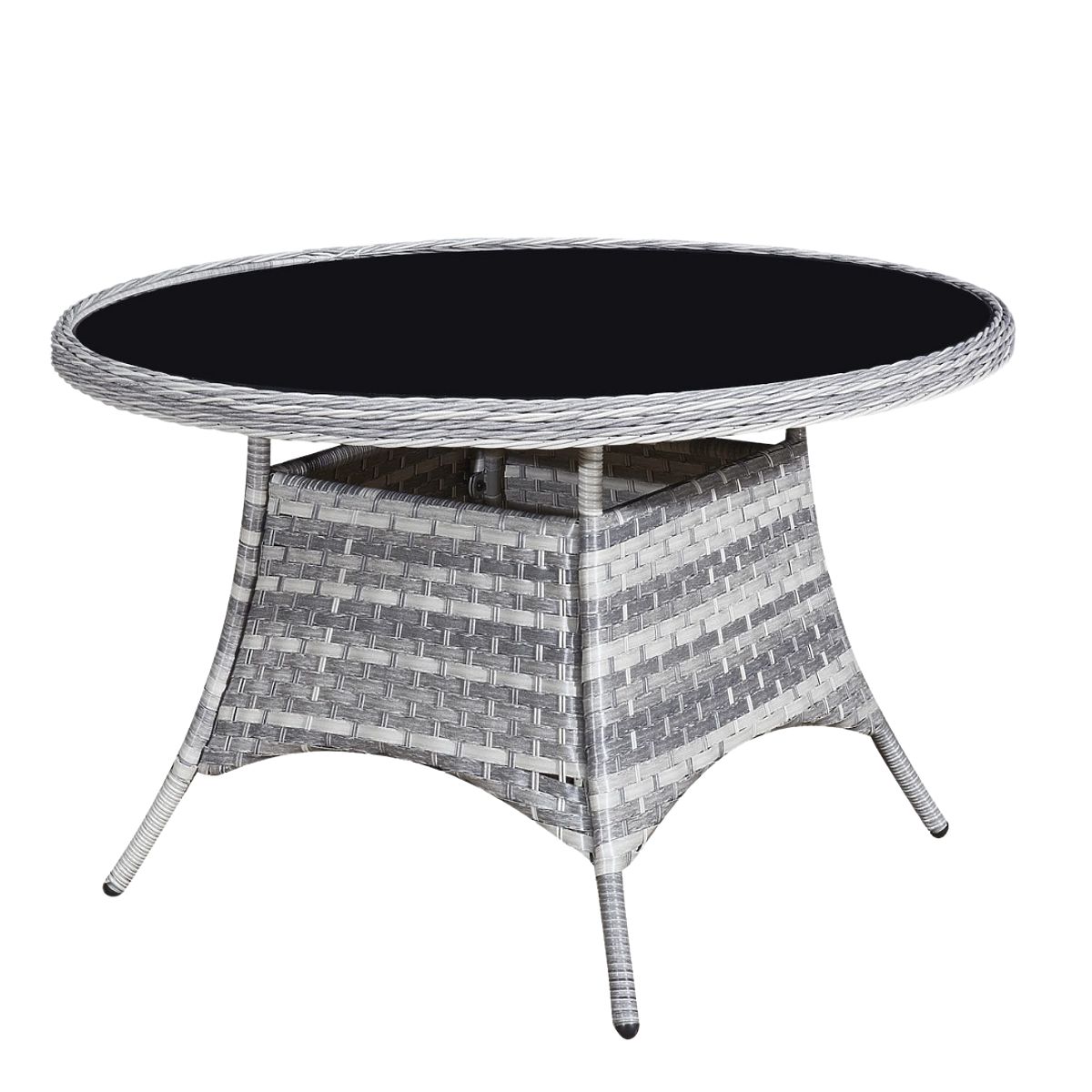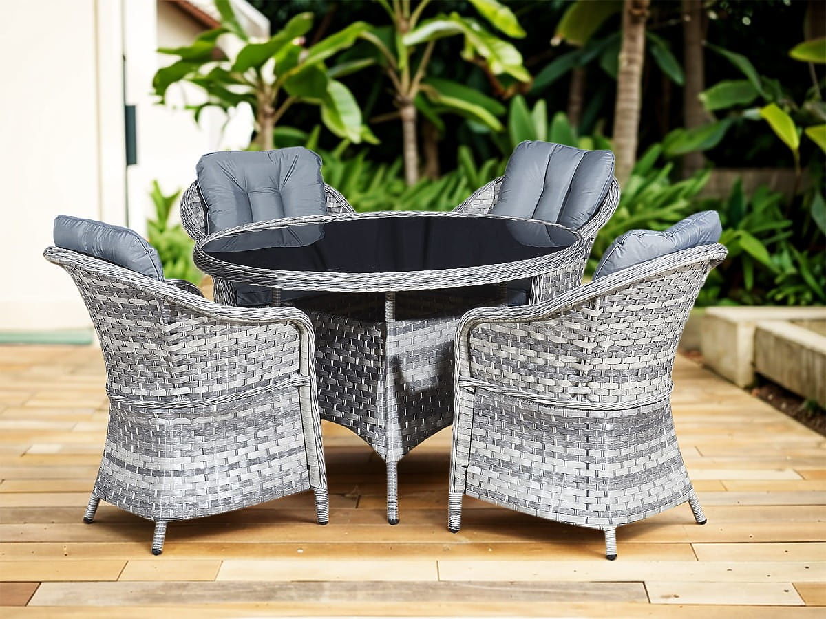 Ensemble de mobilier de table en résine tressée (4 fauteuils + table ronde) MODERNO gris clair