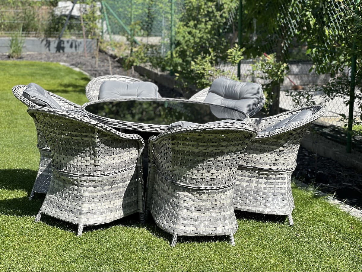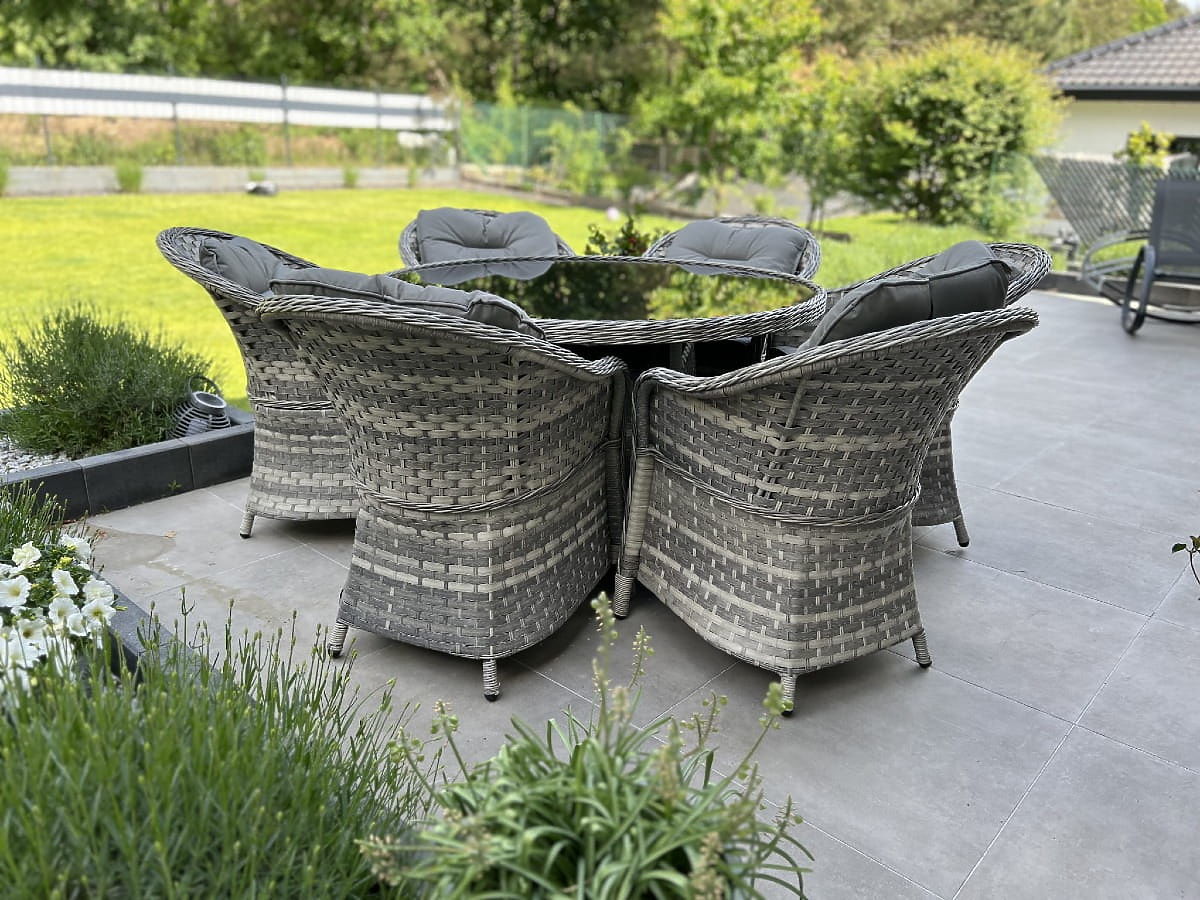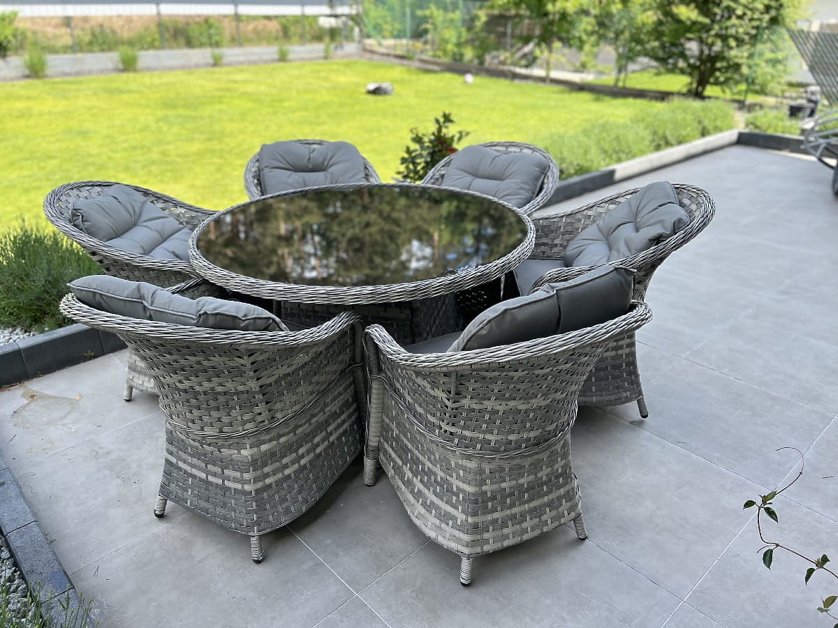 L'ensemble de mobilier de salle à manger MODERNO est l'essence même du design moderne et de l'innovation dans le domaine du mobilier intérieur et extérieur. Offrant une combinaison unique de design contemporain et de fonctionnalité, cet ensemble devient le cœur de tout espace. Les fauteuils et la table de cette collection sont fabriqués en résine tressée synthétique de haute qualité, garantissant une résistance absolue aux intempéries, assurant leur longévité et durabilité. Le choix de matériaux de première classe rend MODERNO GRANDE idéal pour les clients les plus exigeants, recherchant non seulement la beauté, mais aussi la praticité et la durabilité dans leur mobilier de salle à manger. Cet ensemble est la solution parfaite pour ceux qui souhaitent allier élégance et modernité dans leur espace de vie. Couleur de l'ensemble : gris clair chiné, non uniforme Couleur des coussins : gris foncé Tressage : résine tressée plate 17mm x 1,2mm et résine tressée ronde, structure lisse Structure : acier L'ensemble se compose de 7 éléments : 6 x fauteuil : largeur : 56 cm profondeur : 70 cm hauteur : 81 cm 1 x table (avec plateau en verre noir de sécurité de 5mm) : diamètre : 120 cm hauteur : 74 cm Autres dimensions : Hauteur de l'assise du fauteuil : 38 cm + 5 cm de coussin Hauteur du dossier depuis l'assise : 50 cm Largeur des accoudoirs et du dossier : 5 cm Largeur et profondeur de l'assise : 52 x 52 cm L'ensemble est expédié sur 1 palette de dimensions 145x125x210 cm, poids 90 kg Coussins gris foncé pour les assises inclus dans l'ensemble (6 pièces) Tous ont des housses amovibles avec fermeture éclair, fabriquées en matériau d'extérieur (100% polyester), lavables à basse température. Les housses de coussin sont confectionnées en tissu de haute qualité recouvert de téflon, les protégeant de l'humidité. Le rembourrage des coussins est en mousse de tapisserie de haute qualité (fermeté moyenne - T25), empêchant les déformations. Épaisseur des coussins : 5 cm. Possibilité de confectionner des coussins sur commande pour cet ensemble : https://www.bg-meble.pl/pl/p/Usluga-Krawiecka-Poduszki-Na-Zamowienie-/742 Possibilité de confectionner des housses de coussin sur commande pour cet ensemble : https://www.bg-meble.pl/pl/p/Usluga-Krawiecka-Poszewki-Na-Zamowienie/743 Pour préserver encore plus longtemps l'apparence inchangée du mobilier, nous recommandons l'achat d'une housse de protection. La housse gris foncé est d'une seule pièce et possède un cordon de serrage en bas. Toutes les housses sont confectionnées sur commande et le délai de réalisation est d'environ 14 jours ouvrables. Imaginez un mobilier de jardin qui dépasse vos attentes dans tous les domaines – de la durabilité au design. Voici BELLO GIARDINO, où chaque détail compte et où le luxe rencontre la fonctionnalité : Qualité inaltérable : Notre résine tressée synthétique garantit que le mobilier durera des années sans perdre sa beauté ou sa durabilité. Résistance aux intempéries : Notre mobilier résiste aux conditions climatiques les plus difficiles, du soleil brûlant aux hivers glacials, tout en restant toujours beau. Confort luxueux : Des coussins épais et moelleux invitent à la détente, offrant un confort difficile à trouver ailleurs. Légèreté et robustesse : La structure en aluminium combine le meilleur des deux mondes – elle est légère mais extrêmement stable. Un design qui séduit : Chaque élément de notre mobilier a été conçu avec une attention à l'esthétique et à la fonctionnalité, pour s'adapter à tout environnement. Que vous soyez amateur de minimalisme ou que vous appréciez les arrangements riches et élégants, notre mobilier répondra à vos attentes, dépassant les limites de la fonctionnalité et de l'esthétique ordinaires. Nous garantissons que même les clients les plus exigeants ne résisteront pas au confort et au style offerts par BELLO GIARDINO. Transformez votre jardin, terrasse ou balcon en une oasis de relaxation et d'élégance que vous avez toujours souhaitée. N'attendez plus, découvrez BELLO GIARDINO dès aujourd'hui et transformez vos espaces extérieurs en lieux dont vous avez toujours rêvé.