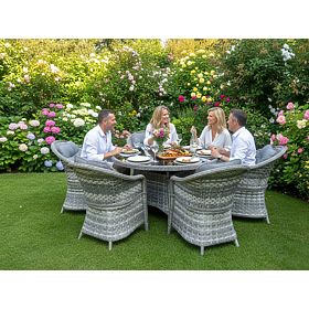 Grande ensemble de salle à manger en résine tressée (6 fauteuils + table) MODERNO gris clair