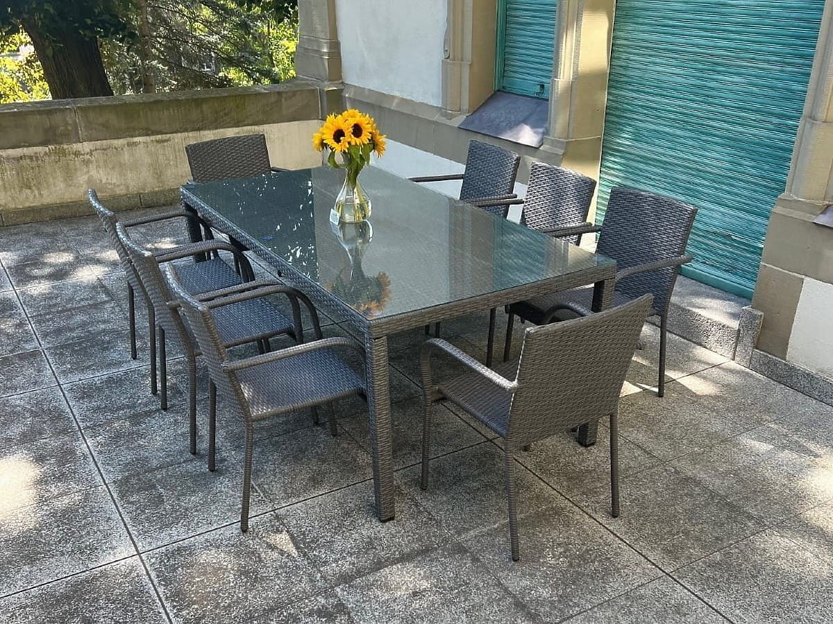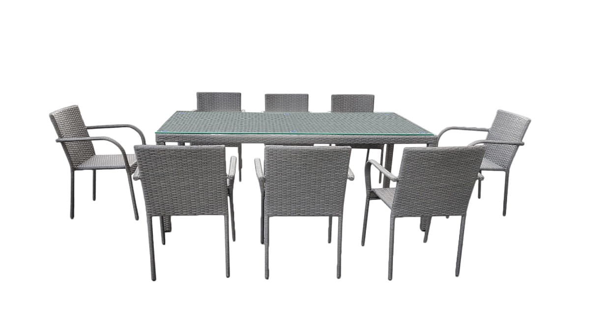 Grande ensemble de salle à manger en résine tressée (8 chaises + grande table) SOTTILE gris