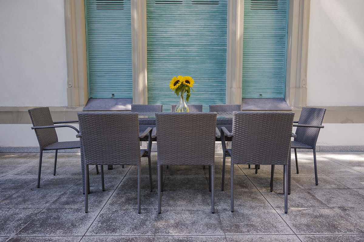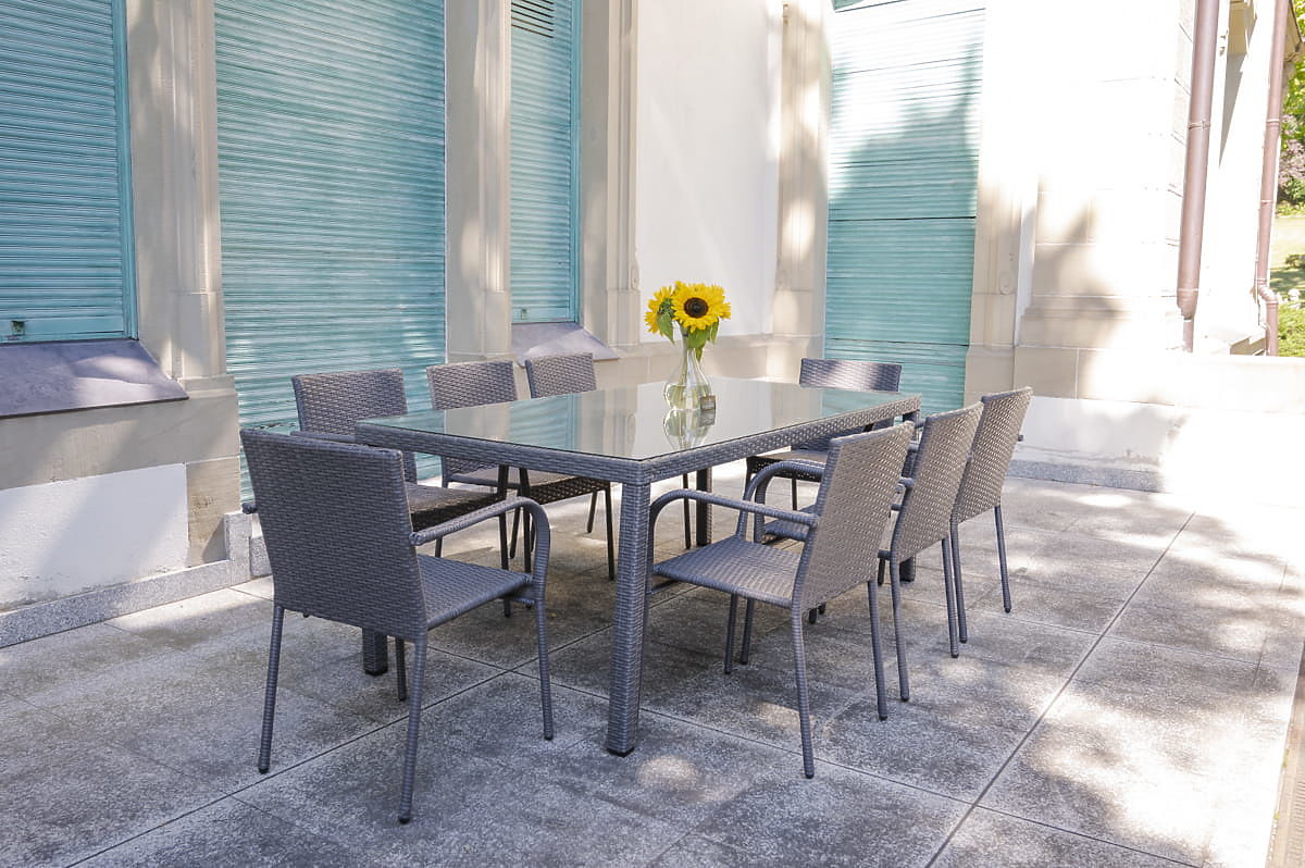L'ensemble de salle à manger SOTTILE a été conçu pour les amateurs de réunions élégantes en cercle restreint et représente une parfaite alliance de style et de confort. Son mobilier extrêmement élégant sera non seulement une superbe décoration pour tout jardin ou terrasse, mais offrira également des conditions exceptionnelles pour passer du temps à l'air libre. Le mobilier de jardin en résine tressée a été fabriqué avec une précision remarquable, soulignant son caractère luxueux, et l'utilisation de résine tressée de haute qualité garantit non seulement une résistance à la pluie et aux rayons UV nocifs, mais aussi durabilité et facilité d'entretien. L'ensemble de terrasse SOTTILE, avec son matériau pratique et son design réfléchi, est une solution à la fois pratique et esthétique qui séduira tous ceux qui apprécient la combinaison de la modernité et de l'élégance traditionnelle dans l'aménagement des espaces extérieurs. Couleur de l'ensemble SOTTILE : gris, structure brossée Tressage : résine tressée 7-8mm x 1,2mm Structure du mobilier : table – aluminium, chaises – acier L'ensemble se compose de 9 éléments : 1 x table : longueur : 200 cm largeur : 100 cm hauteur : 74 cm plateau en verre transparent de 5 mm en verre de sécurité, posé sur un tressage en résine 8 x chaises : largeur : 56 cm profondeur : 50 cm hauteur : 84 cm hauteur du sol à l'assise : 44 cm hauteur du dossier depuis l'assise : 43 cm largeur de l'assise : 40 cm profondeur de l'assise : 43 cm L'ensemble est expédié sur 1 palette de dimensions 120x80x210 cm, poids 80 kg Les chaises peuvent être utilisées immédiatement après déballage. Les chaises sont empilables (possibilité d'emboîtement), ce qui facilite le rangement et le mobilier ne prend pas beaucoup de place. La table est destinée à un montage simple, autonome selon le manuel fourni. Le plateau en verre de la table est fixé sur des ventouses en silicone qui le protègent du glissement. Possibilité d'achat de coussins pour les chaises ici. La résine tressée est résistante aux intempéries, mais pour conserver l'apparence inchangée du mobilier plus longtemps, nous recommandons l'achat d'une housse de protection. La housse de couleur gris foncé est d'une seule pièce et possède un cordon de serrage en bas. Toutes les housses sont faites sur mesure et le délai de réalisation est d'environ 14 jours ouvrables. Imaginez un mobilier de jardin qui dépasse vos attentes à tous égards – de la durabilité au design. C'est BELLO GIARDINO, où chaque détail compte et où le luxe rencontre la fonctionnalité : Qualité intemporelle : Notre résine synthétique garantit que le mobilier durera des années sans perdre de sa beauté ou de sa durabilité. Résistance aux intempéries : Notre mobilier résiste aux conditions climatiques les plus difficiles, du soleil brûlant aux hivers glacials, tout en restant toujours beau. Confort luxueux : Des coussins épais et doux invitent à la détente, offrant un confort difficile à trouver ailleurs. Légèreté et robustesse : La structure en aluminium combine le meilleur des deux mondes – elle est légère, mais extrêmement stable. Un design qui séduit : Chaque élément de notre mobilier a été conçu en tenant compte de l'esthétique et de la fonctionnalité, pour s'adapter à tout environnement. Que vous soyez amateur de minimalisme ou que vous appréciez les aménagements riches et élégants, notre mobilier répondra à vos attentes, dépassant les limites de la fonctionnalité et de l'esthétique ordinaires. Nous garantissons que même les clients les plus exigeants ne résisteront pas au confort et au style offerts par BELLO GIARDINO. Transformez votre jardin, terrasse ou balcon en une oasis de détente et d'élégance que vous avez toujours souhaitée. N'attendez pas, découvrez BELLO GIARDINO dès aujourd'hui et transformez vos espaces extérieurs en lieux dont vous avez toujours rêvé. Photos du mobilier de nos clients :