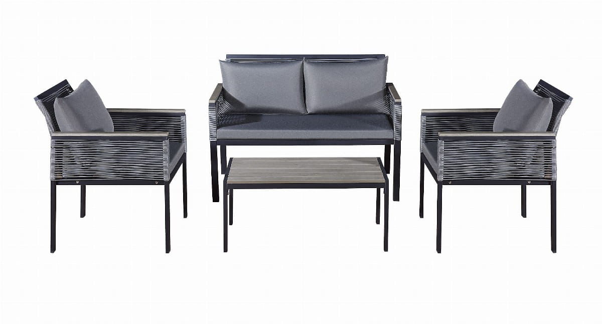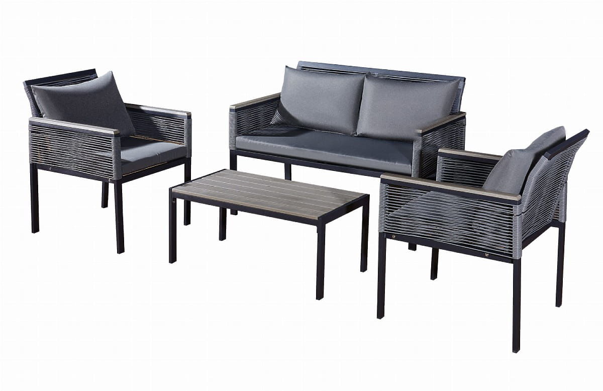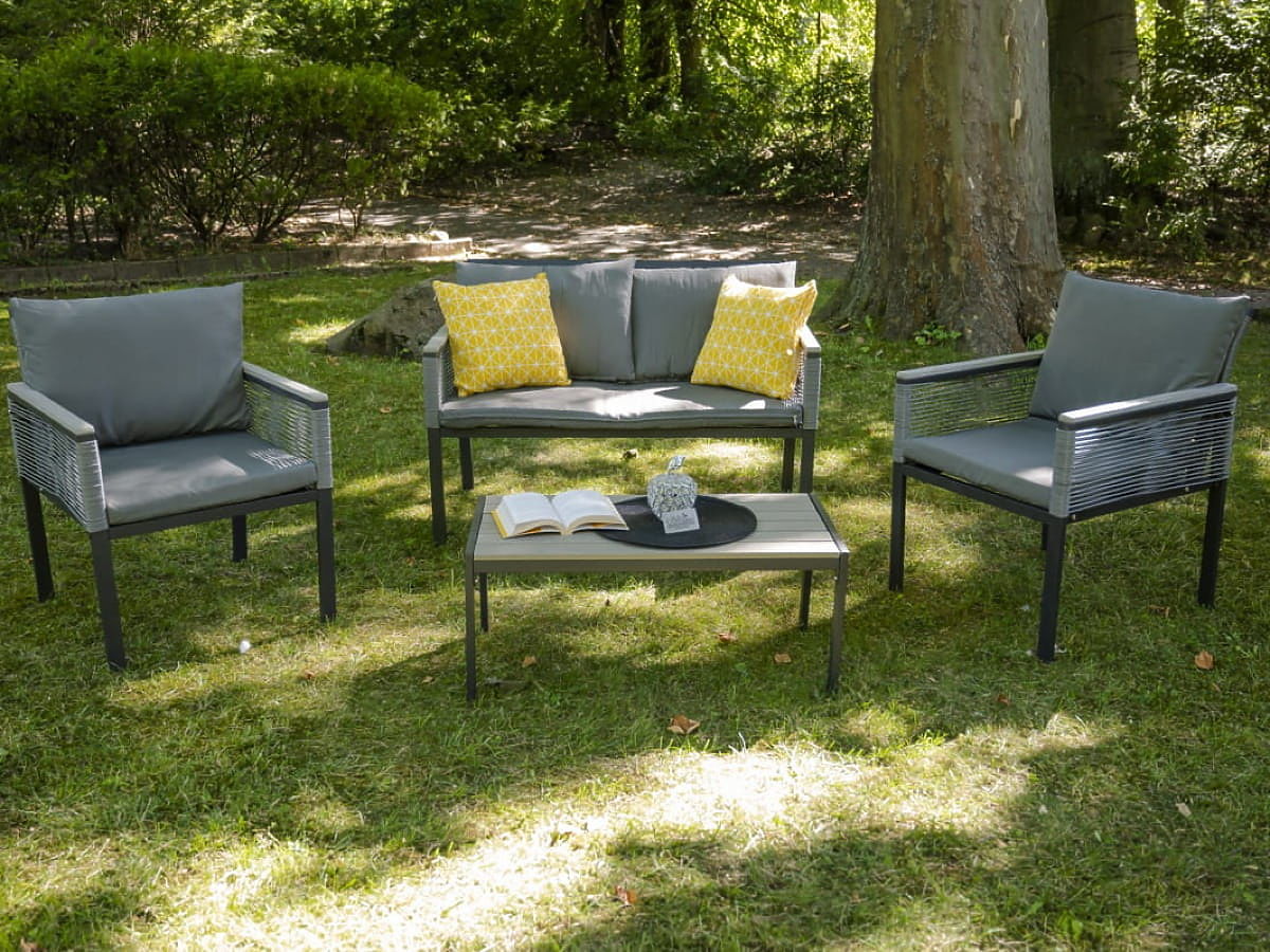 Ensemble de mobilier de jardin en aluminium (2 x fauteuil, canapé + table) CORTO rotin synthétique r