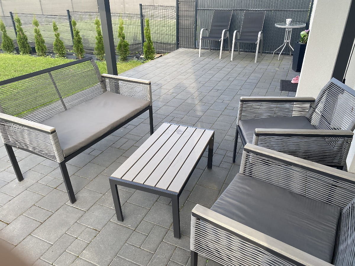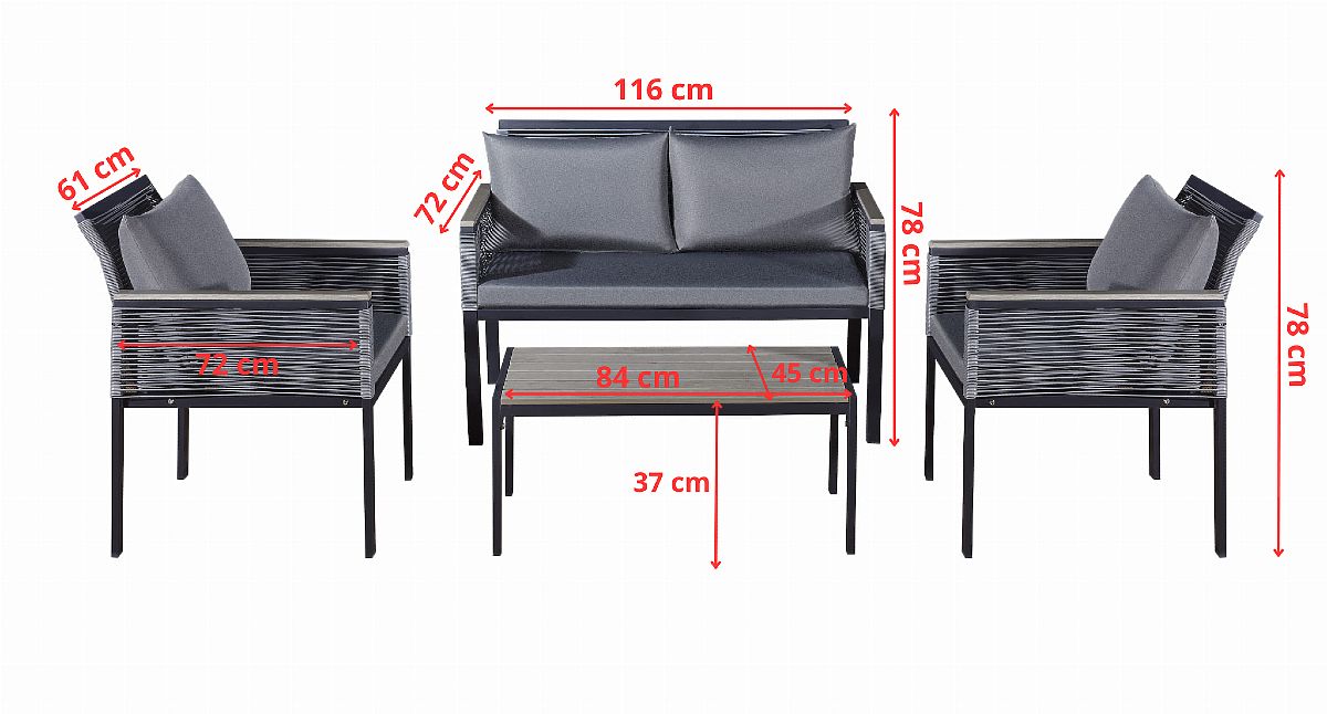 L'ensemble de mobilier CORTO a été conçu pour offrir un confort maximal et une esthétique raffinée. C'est un choix excellent pour ceux qui souhaitent donner un caractère unique à leur jardin, terrasse ou balcon. Le mobilier de jardin CORTO combine un confort luxueux avec un design classique, cet ensemble est non seulement confortable, mais aussi extrêmement fonctionnel, occupant peu d'espace. Ce mobilier de balcon est doté d'un tressage en rotin synthétique de haute qualité, garantissant une résistance aux intempéries nuisibles tout en assurant une utilisation à long terme sans perte d'apparence esthétique. L'ensemble de mobilier de balcon Corto est la solution idéale pour tous ceux qui apprécient l'élégance, la durabilité et le confort de se détendre en plein air, tout en étant un complément élégant à toute décoration extérieure. Couleur de l'ensemble CORTO : noir, uni Tressage : rotin synthétique rond Structure du mobilier : aluminium (nécessite un montage simple) Accoudoirs finis en polywood L'ensemble se compose de 4 éléments (après assemblage) : 2 x fauteuil : largeur : 61 cm profondeur : 72 cm hauteur : 78 cm 1 x canapé : largeur : 116 cm profondeur : 72 cm hauteur : 78 cm 1 x table (plateau en polywood) : longueur : 84 cm largeur : 45 cm hauteur : 37 cm Coussins gris inclus dans l'ensemble (3 pour les assises, 4 pour les dossiers). Tous ont des housses amovibles avec fermeture éclair, fabriquées en matériau extérieur (100% polyester), lavables à basse température. Les housses de coussins sont confectionnées dans un tissu de haute qualité enduit de téflon, les protégeant de l'humidité. Le rembourrage des coussins est en mousse d'ameublement de haute qualité (fermeté moyenne - T25), empêchant les déformations. Épaisseur des coussins : 5 cm Possibilité de confectionner des coussins sur commande pour cet ensemble : https://www.bg-meble.pl/pl/p/Usluga-Krawiecka-Poduszki-Na-Zamowienie-/742 Possibilité de confectionner des housses de coussins sur commande pour cet ensemble : https://www.bg-meble.pl/pl/p/Usluga-Krawiecka-Poszewki-Na-Zamowienie/743 Possibilité de commander uniquement l'ensemble complet. Ensemble à monter soi-même selon les instructions fournies. Un ensemble complet de vis et clés est inclus. Le rotin synthétique est résistant aux intempéries nuisibles, mais pour une conservation encore plus longue de l'apparence inchangée du mobilier, nous recommandons d'acheter une housse de protection. La housse de couleur gris foncé est d'une seule pièce et possède un cordon de serrage en bas passé à travers des œillets métalliques. Toutes les housses sont confectionnées sur mesure et le délai de réalisation est d'environ 14 jours ouvrables. Imaginez un mobilier de jardin qui dépasse vos attentes à tous égards - de la durabilité au design. Voici BELLO GIARDINO, où chaque détail compte et où le luxe rencontre la fonctionnalité : Qualité intemporelle : Notre rotin synthétique garantit que le mobilier durera des années sans perdre de sa beauté ou de sa durabilité. Résistance aux intempéries : Notre mobilier résiste aux conditions climatiques les plus difficiles, du soleil brûlant aux hivers glacials, tout en restant beau. Confort luxueux : Des coussins épais et doux invitent à la détente, offrant un confort difficile à trouver ailleurs. Légèreté et durabilité : La structure en aluminium combine le meilleur des deux mondes - elle est légère mais extrêmement stable. Un design qui captive : Chaque élément de notre mobilier a été conçu avec une attention à l'esthétique et à la fonctionnalité, pour s'adapter à tout environnement. Que vous soyez amateur de minimalisme ou que vous appréciez les aménagements riches et élégants, notre mobilier répondra à vos attentes, dépassant les limites de la fonctionnalité et de l'esthétique ordinaires. Nous garantissons que même les clients les plus exigeants ne résisteront pas au confort et au style offerts par BELLO GIARDINO. Transformez votre jardin, terrasse ou balcon en une oasis de détente et d'élégance que vous avez toujours souhaitée. Ne tardez pas, découvrez BELLO GIARDINO dès aujourd'hui et transformez vos espaces extérieurs en lieux dont vous avez toujours rêvé.