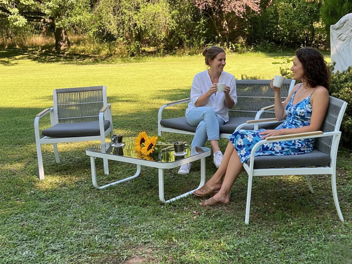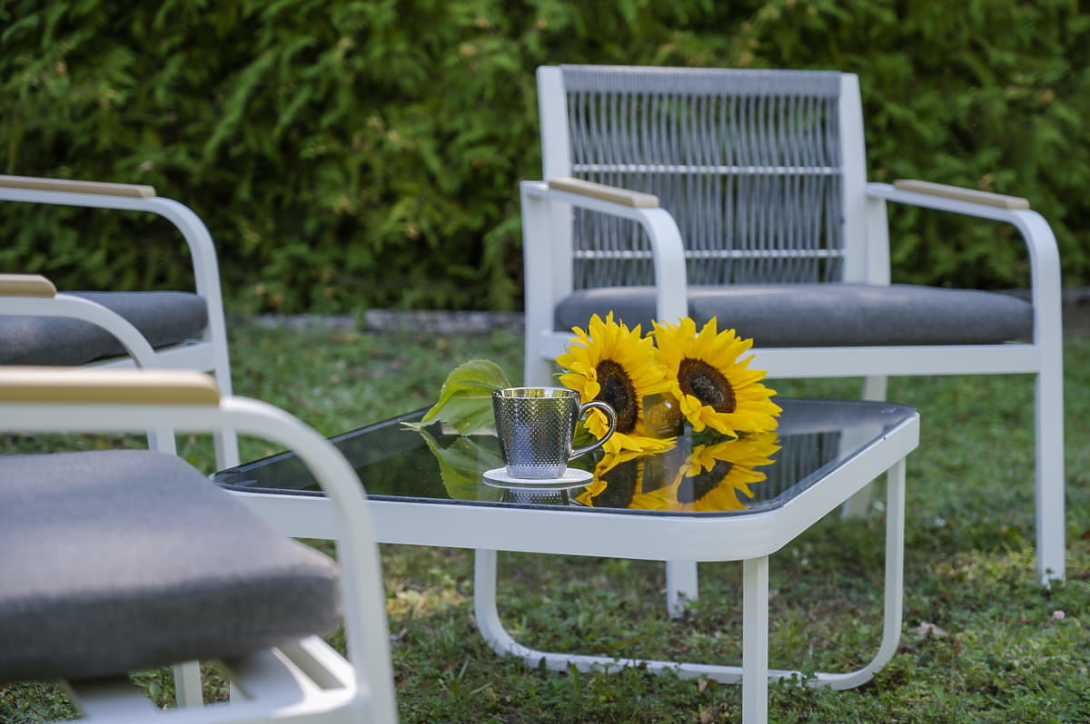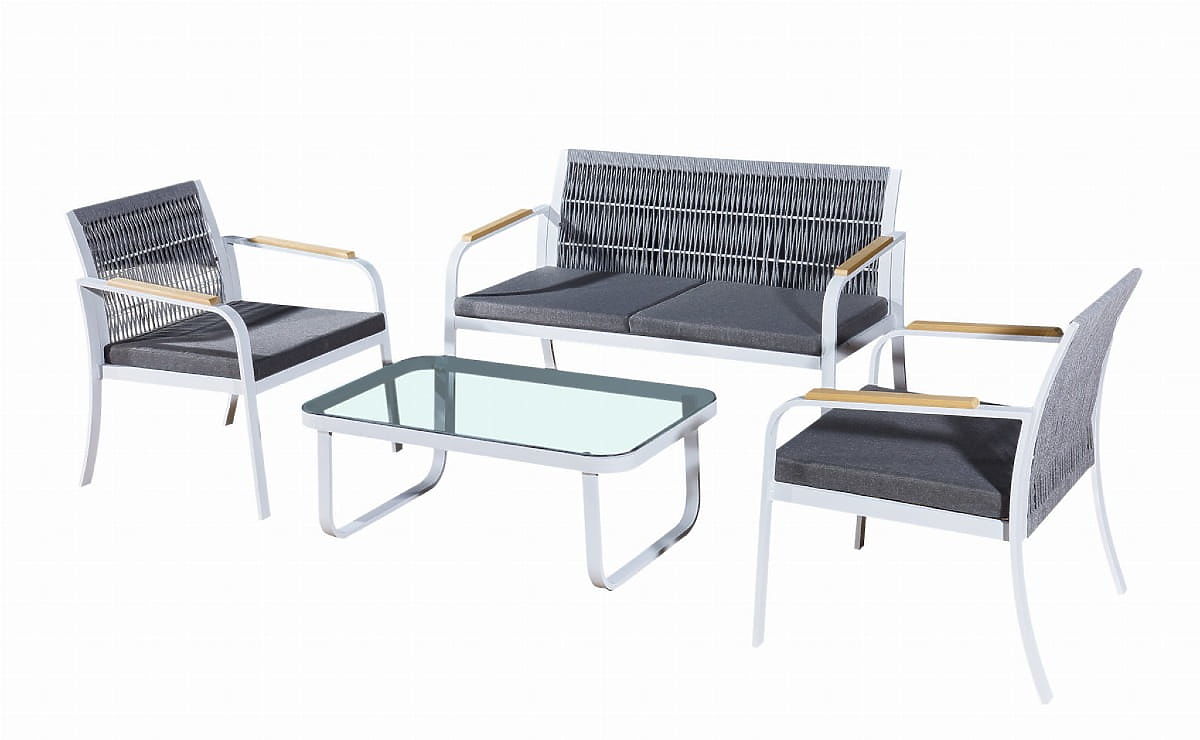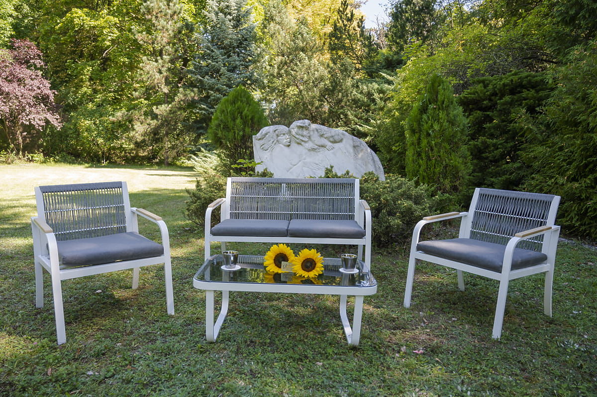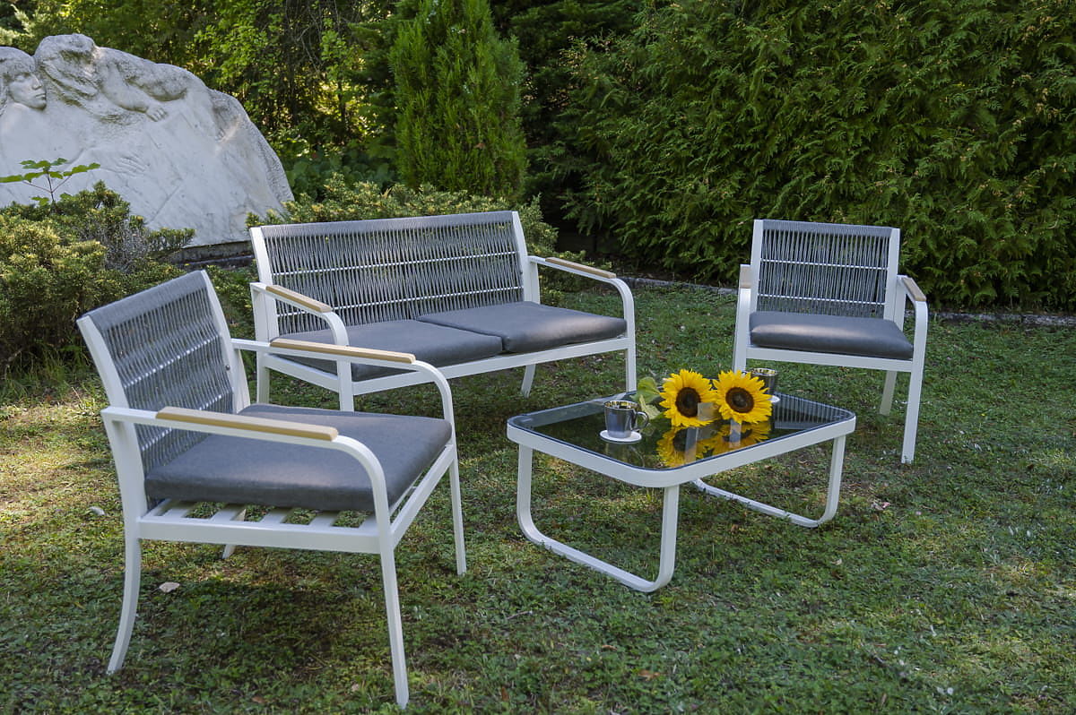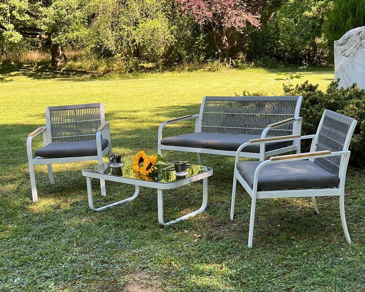 Ensemble de mobilier de jardin en aluminium (2 x fauteuil, canapé + table) RARO blanc, gris