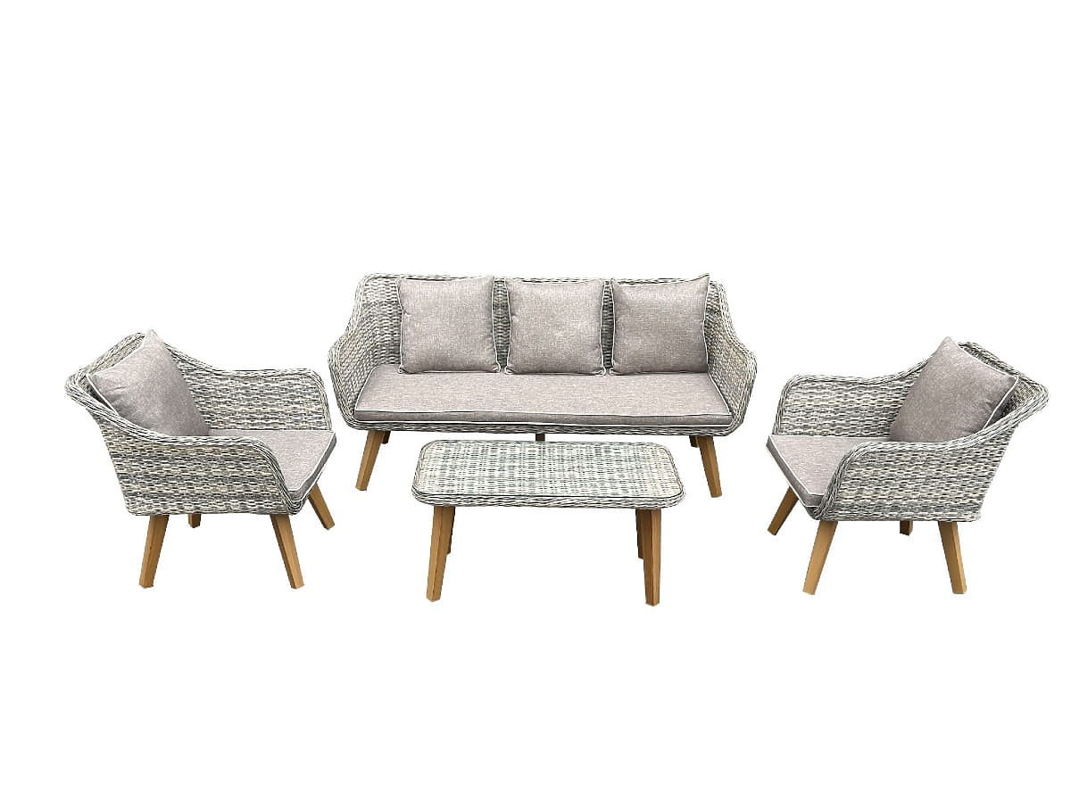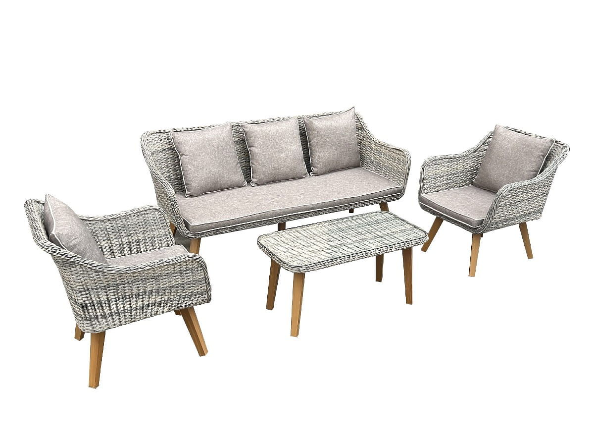 Mobilier de jardin en résine tressée (grand canapé 3 places + 2 fauteuils + table) LARGO Gris Mélang