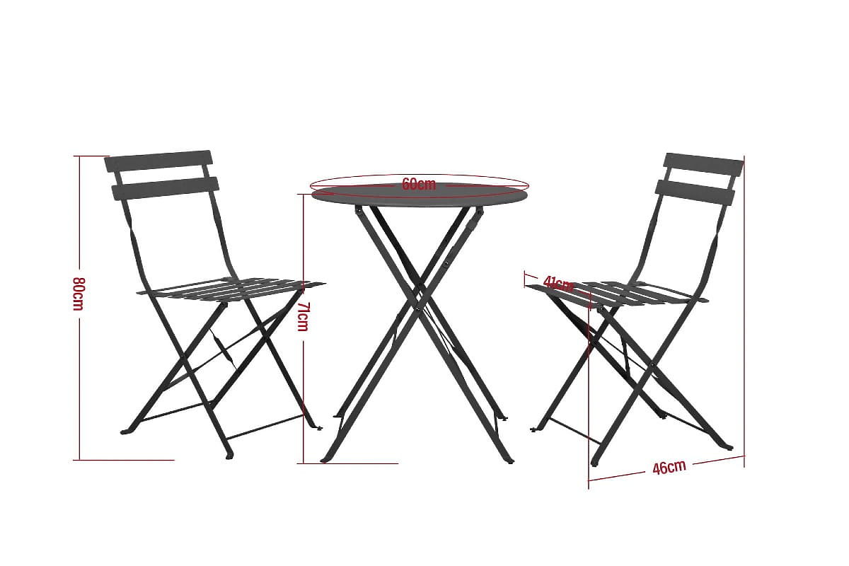 Ensemble de mobilier de balcon (2 x chaises pliantes + table) SEMPLICI Acier Noir