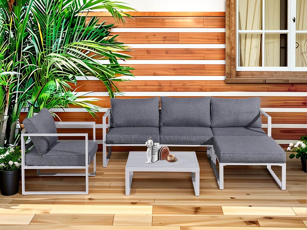Ensemble de mobilier de terrasse en aluminium (Canapé 204 cm, fauteuil, tabouret + table) MOSTRARE B