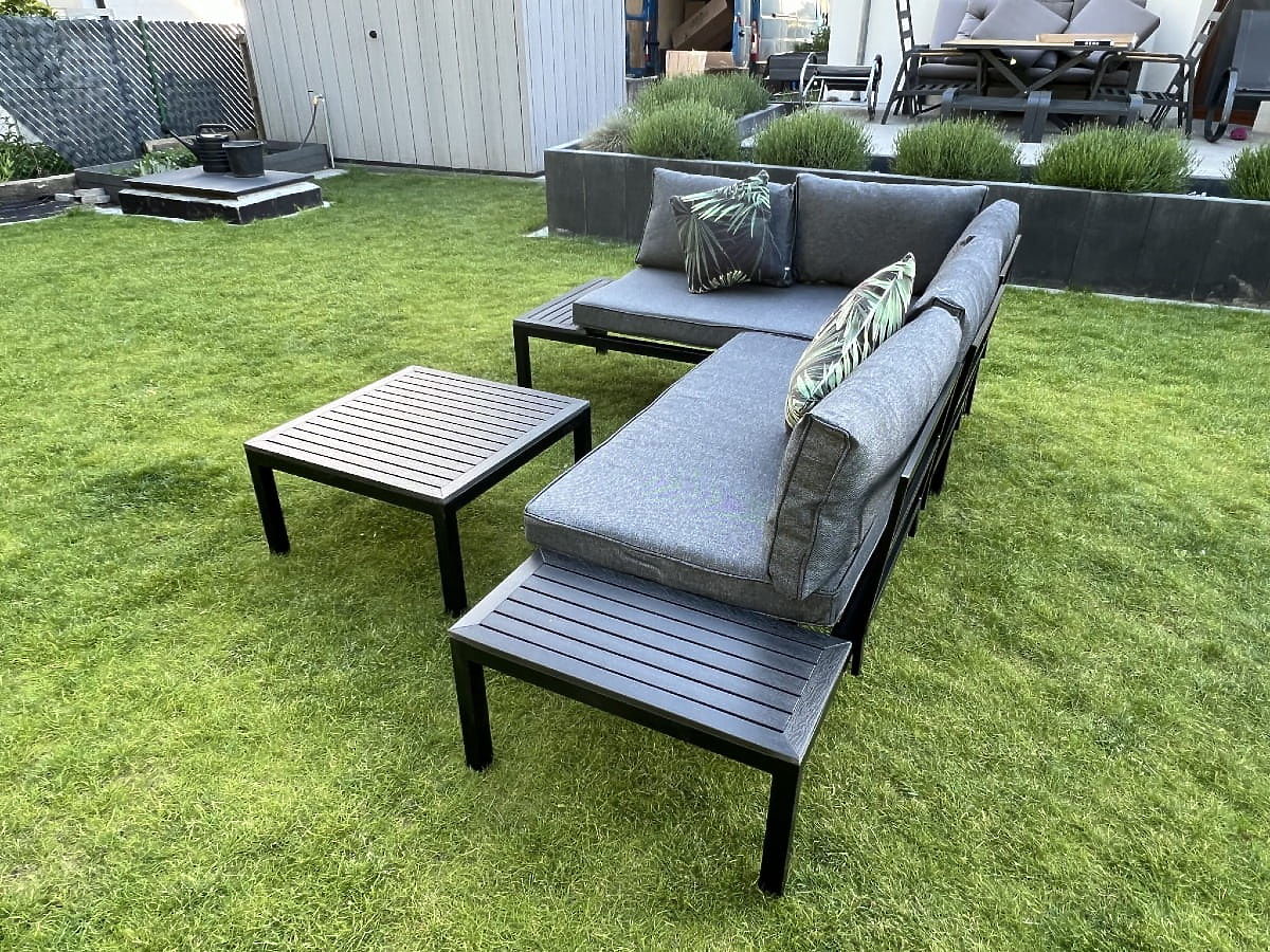 Découvrez le confort et le style avec cet ensemble de jardin d'angle ! Sa structure en acier solide garantit des années d'utilisation, et les accents en bois noir ajoutent non seulement du charme, mais protègent également contre les caprices du temps. Conçu pour votre détente, il est équipé de coussins moelleux en mousse de haute qualité qui offrent un confort inégalé. Cet ensemble de mobilier est un investissement dans un jardin beau et fonctionnel qui vous servira pendant de nombreuses saisons. Couleur de l'ensemble VENTO : noir Couleur des coussins : gris Structure du mobilier : acier L'ensemble d'angle est modulaire, ce qui permet de l'agencer dans n'importe quelle configuration (gauche/droite). L'ensemble se compose de 3 éléments : 2 x module latéral (droit et gauche) : largeur : 160 cm profondeur : 67 cm hauteur : 69 cm 1 x table : longueur : 67 cm largeur : 67 cm hauteur : 34 cm Coussins gris pour les sièges et dossiers inclus dans l'ensemble (2 pour les sièges, 5 pour les dossiers). Épaisseur des coussins de siège : 8 cm. Imaginez un mobilier de jardin qui dépasse vos attentes à tous égards - de la durabilité au design. Voici BELLO GIARDINO, où chaque détail compte et le luxe rencontre la fonctionnalité : Qualité durable : Notre rotin synthétique garantit que le mobilier dure des années sans perdre de sa beauté ou de sa résistance. Résistance aux intempéries : Notre mobilier résiste aux conditions météorologiques les plus difficiles, du soleil brûlant aux hivers glacials, tout en restant magnifique. Confort luxueux : Des coussins épais et doux invitent à la détente, offrant un confort difficile à trouver ailleurs. Légèreté et résistance : La structure en aluminium combine le meilleur des deux mondes - elle est légère mais extrêmement stable. Un design qui séduit : Chaque élément de notre mobilier a été conçu en tenant compte de l'esthétique et de la fonctionnalité, pour s'adapter à tous les environnements. Que vous soyez amateur de minimalisme ou que vous appréciiez les arrangements riches et élégants, notre mobilier répondra à vos attentes, dépassant les limites de la fonctionnalité et de l'esthétique ordinaires. Nous garantissons que même les clients les plus exigeants ne résisteront pas au confort et au style offerts par BELLO GIARDINO. Transformez votre jardin, terrasse ou balcon en une oasis de détente et d'élégance que vous avez toujours voulu. Ne tardez pas, découvrez BELLO GIARDINO dès aujourd'hui et transformez vos espaces extérieurs en lieux dont vous avez toujours rêvé.