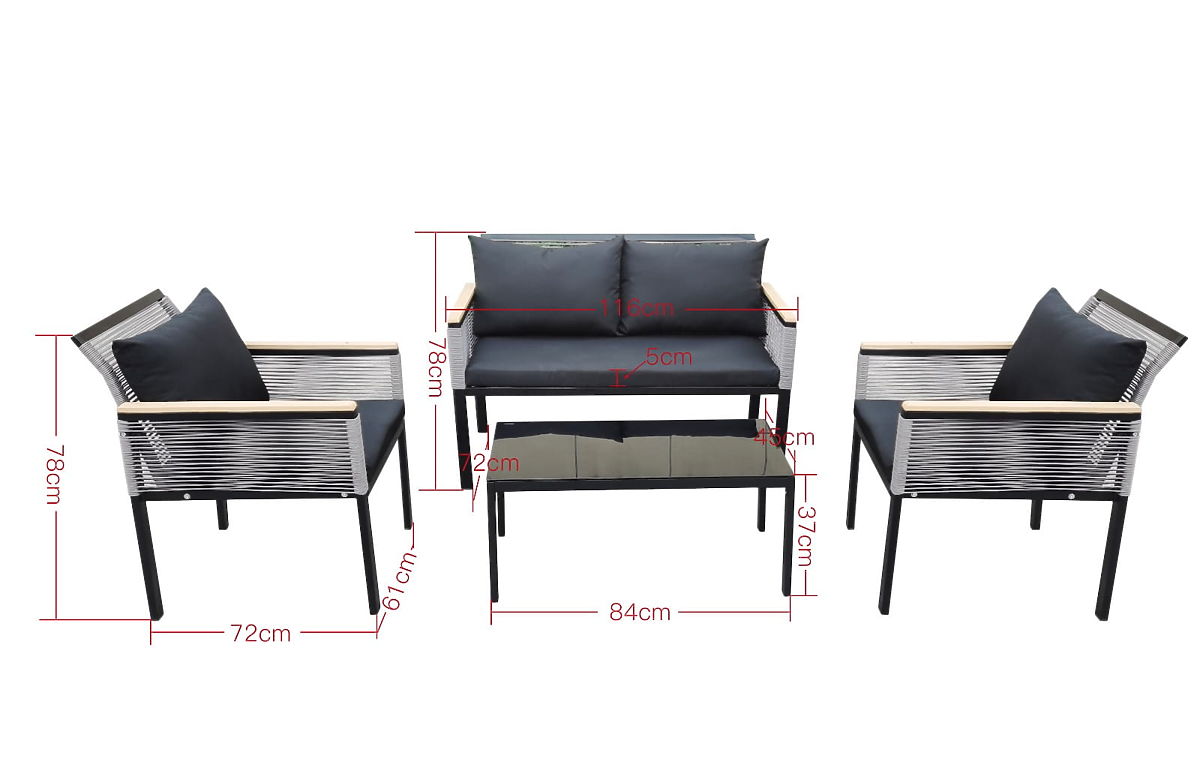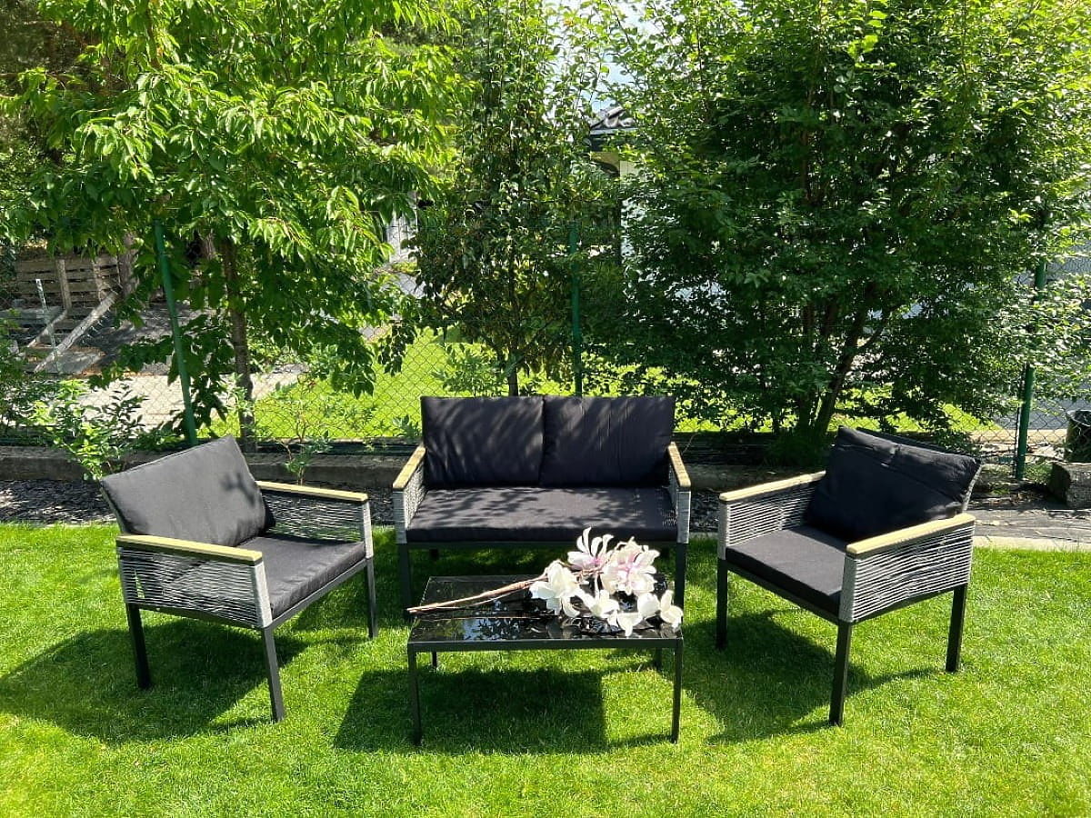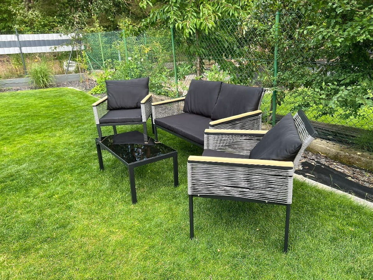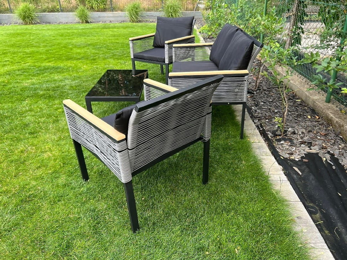 Cet ensemble de mobilier est la quintessence du confort et du design, une invitation à créer une oasis de tranquillité unique dans votre jardin, sur votre terrasse ou balcon. C'est le choix parfait pour ceux qui souhaitent transformer leur espace extérieur en chef-d'œuvre de fonctionnalité et d'esthétique. Cet ensemble extrêmement original, caractérisé par un format compact, s'adapte parfaitement même aux coins les plus confortables. Fabriqué en aluminium, résistant aux caprices du temps, garantissant sa durabilité phénoménale et son éclat impeccable pendant de nombreuses années. Si vous rêvez d'une combinaison parfaite d'élégance, de fiabilité et de relaxation profonde en plein air, cet ensemble est un coup de maître. Il deviendra une icône de style pour votre aménagement extérieur, l'illuminant d'un caractère unique et invitant à des moments de détente sans fin. Couleur de l'ensemble CORTO : noir, tissage uniforme : rotin synthétique rond Structure du mobilier : aluminium (nécessite un assemblage simple) Accoudoirs finis en polywood L'ensemble se compose de 4 éléments (après assemblage) : 2 x fauteuil : largeur : 61 cm profondeur : 72 cm hauteur : 78 cm 1 x canapé : largeur : 116 cm profondeur : 72 cm hauteur : 78 cm 1 x table (plateau en polywood) : longueur : 84 cm largeur : 45 cm hauteur : 37 cm Coussins noirs inclus dans l'ensemble (3 pour les assises, 4 pour les dossiers). Tous ont des housses amovibles avec fermeture éclair, fabriquées en matériau extérieur (100% polyester), lavables à basse température. Les housses de coussin sont confectionnées en tissu de haute qualité enduit de téflon, les protégeant de l'humidité. Le rembourrage des coussins est en mousse de rembourrage de haute qualité (dureté moyenne - T25), empêchant les déformations. Épaisseur des coussins : 5 cm Possibilité de confectionner des coussins sur commande individuelle pour cet ensemble : https://www.bg-meble.pl/pl/p/Usluga-Krawiecka-Poduszki-Na-Zamowienie-/742 Possibilité de confectionner des housses de coussin sur commande individuelle pour cet ensemble : https://www.bg-meble.pl/pl/p/Usluga-Krawiecka-Poszewki-Na-Zamowienie/743 Possibilité de commander uniquement l'ensemble complet. Ensemble à monter soi-même selon les instructions fournies. Un ensemble complet de vis et clés est inclus. Le rotin synthétique est résistant aux influences néfastes du temps, mais pour préserver encore plus longtemps l'apparence inchangée du mobilier, nous recommandons l'achat d'une housse de protection. La housse de couleur gris foncé est d'une seule pièce et possède un cordon de serrage en bas, passé à travers des œillets métalliques. Toutes les housses sont fabriquées sur mesure et le délai de réalisation est d'environ 14 jours ouvrables. Imaginez un mobilier de jardin qui dépasse vos attentes à tous égards – de la durabilité au design. Voici BELLO GIARDINO, où chaque détail compte et où le luxe rencontre la fonctionnalité : Qualité intemporelle : Notre rotin synthétique garantit que le mobilier durera des années sans perdre de sa beauté ou de sa durabilité. Résistance aux intempéries : Notre mobilier résiste aux conditions météorologiques les plus exigeantes, du soleil brûlant aux hivers glacials, restant toujours beau. Confort luxueux : Des coussins épais et doux invitent à la détente, offrant un confort difficile à trouver ailleurs. Légèreté et solidité : La structure en aluminium combine le meilleur des deux mondes – elle est légère, mais extrêmement stable. Design captivant : Chaque élément de notre mobilier a été conçu avec une attention à l'esthétique et à la fonctionnalité, pour s'adapter à tout environnement. Que vous soyez amateur de minimalisme ou que vous appréciez les arrangements riches et élégants, notre mobilier répondra à vos attentes, dépassant les limites de la simple fonctionnalité et esthétique. Nous garantissons que même les clients les plus exigeants ne résisteront pas au confort et au style offerts par BELLO GIARDINO. Transformez votre jardin, terrasse ou balcon en une oasis de détente et d'élégance que vous avez toujours souhaitée. N'attendez plus, découvrez BELLO GIARDINO dès aujourd'hui et transformez vos espaces extérieurs en lieux dont vous avez toujours rêvé.