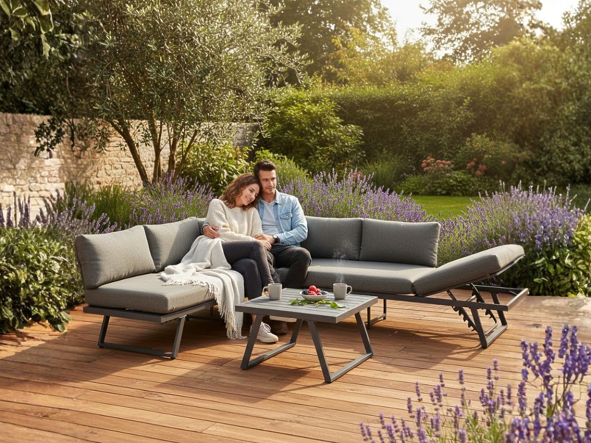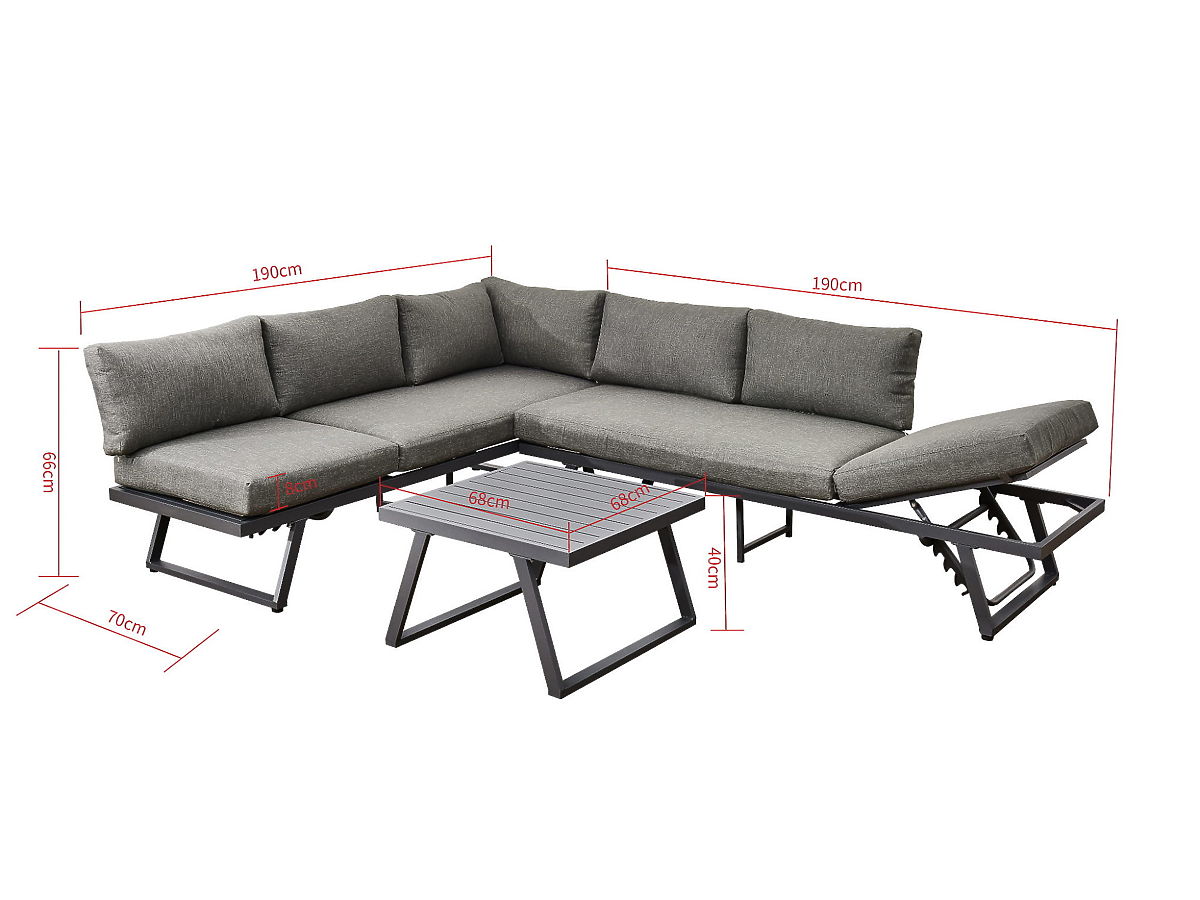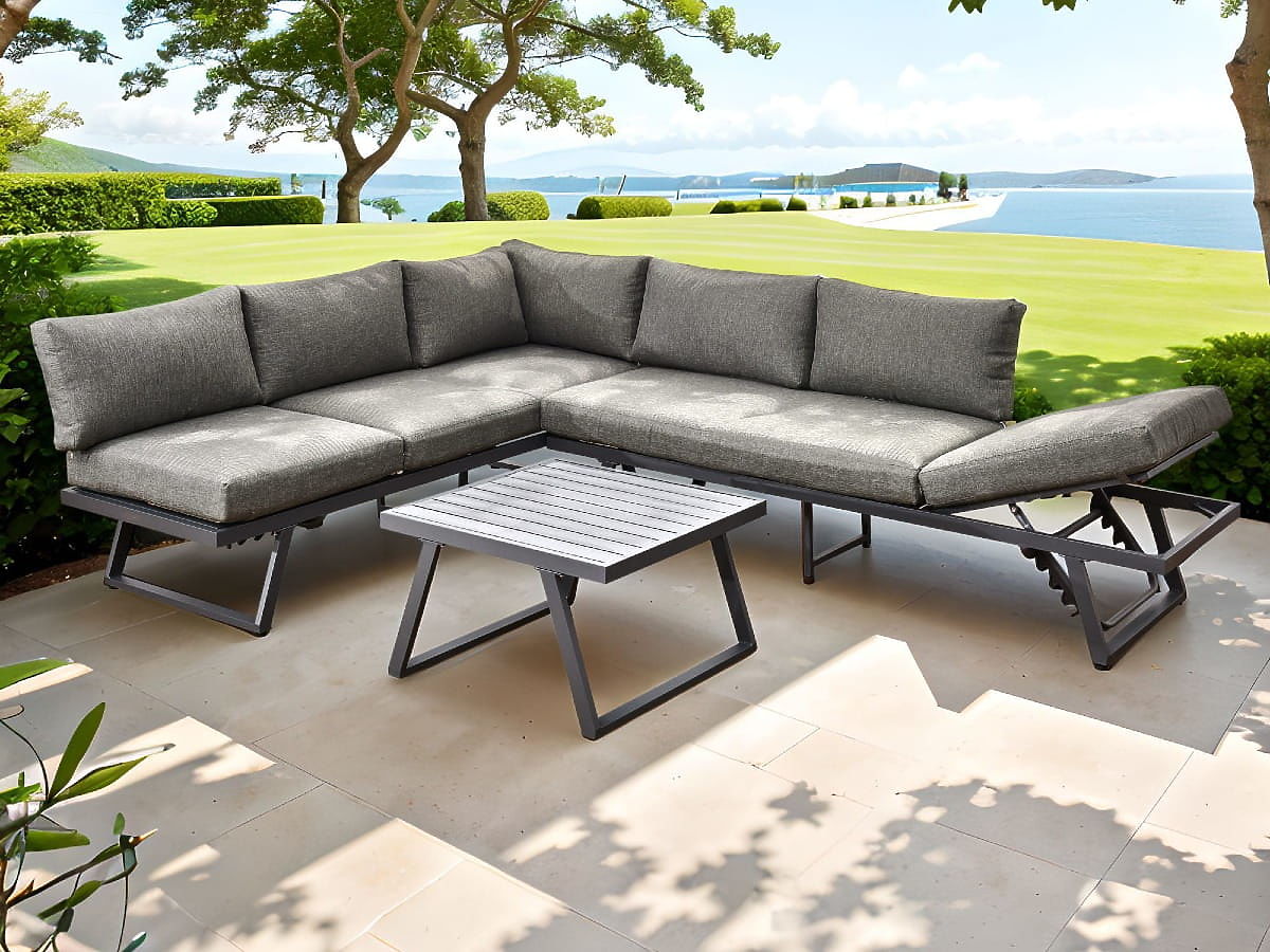 Canapé d'angle de jardin en aluminium avec table RADIOSO à dossier réglable