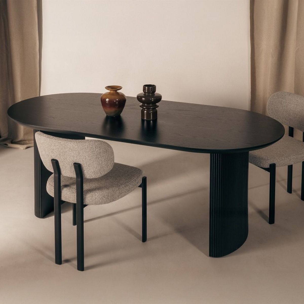 Table à manger ovale avec base rainurée pour un design unique. .. plus