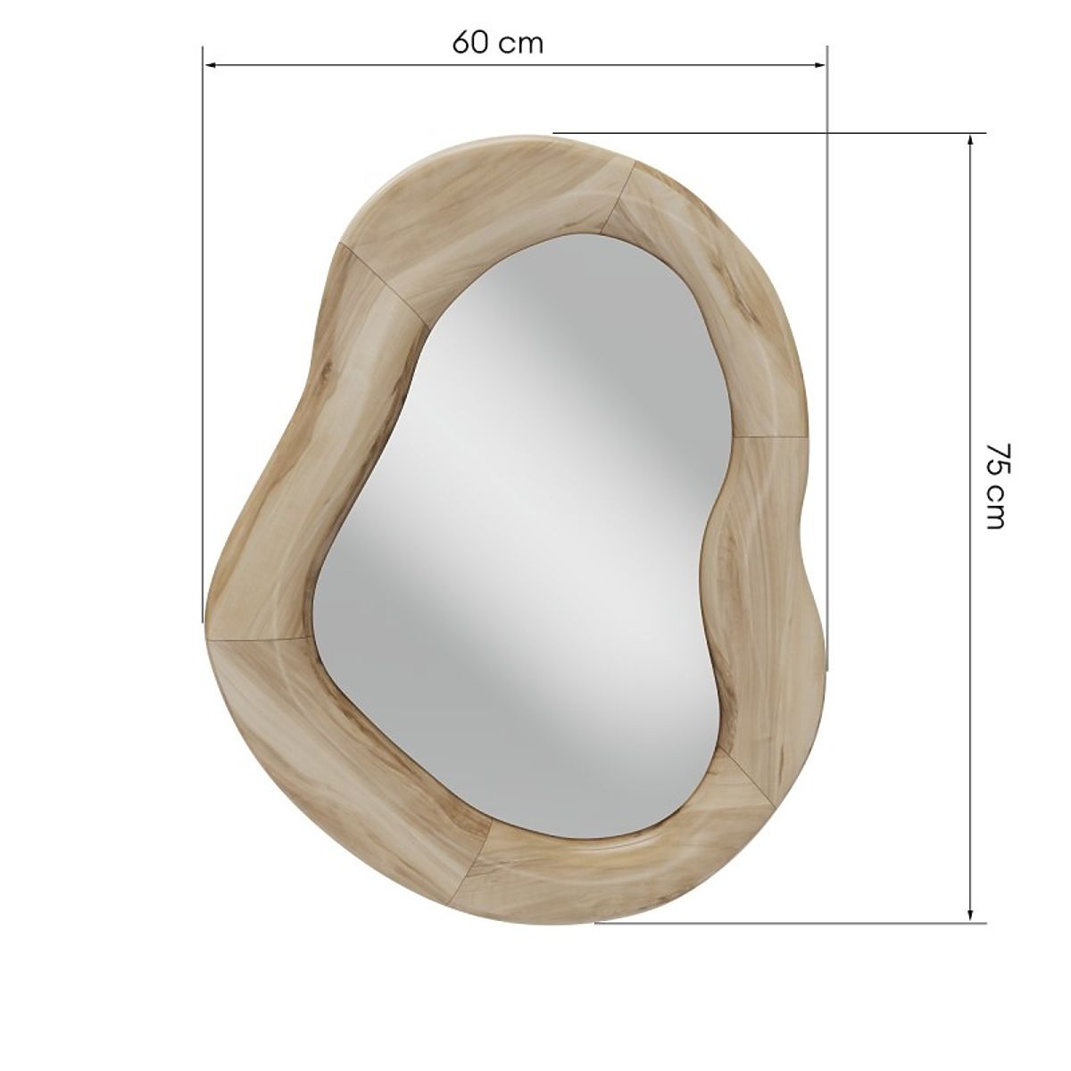 Lukahome.fr » Décoration / Miroirs / Miroir suspendu dans un cadre en bois Lia 75x60 cm, forme organique, forme irrégulière, naturel
