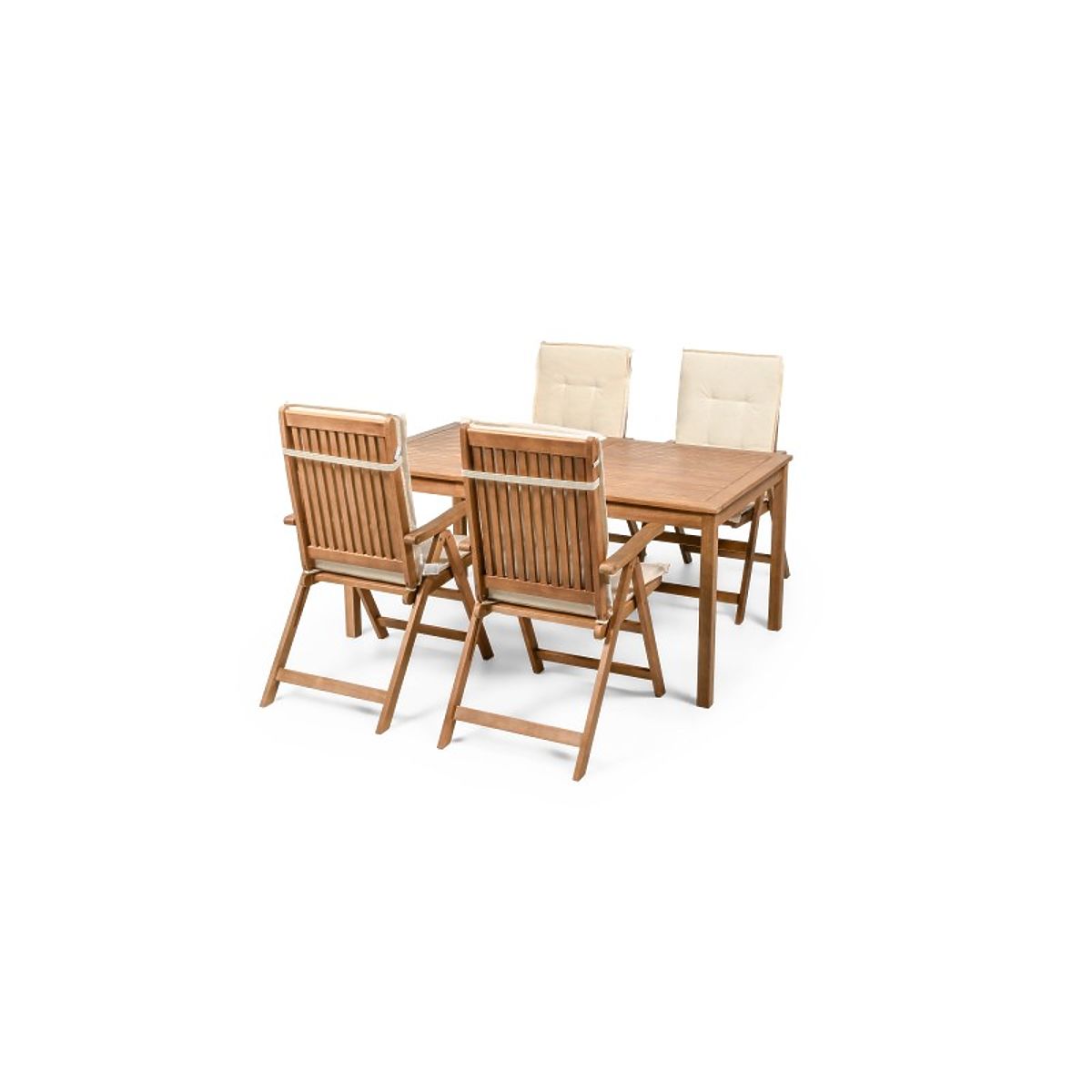 Lukahome.fr » mobilier de jardin / ensembles de jardin / Ensemble de jardin Familis table 160 cm + 4 chaises avec dossiers réglables et coussins crème, bois