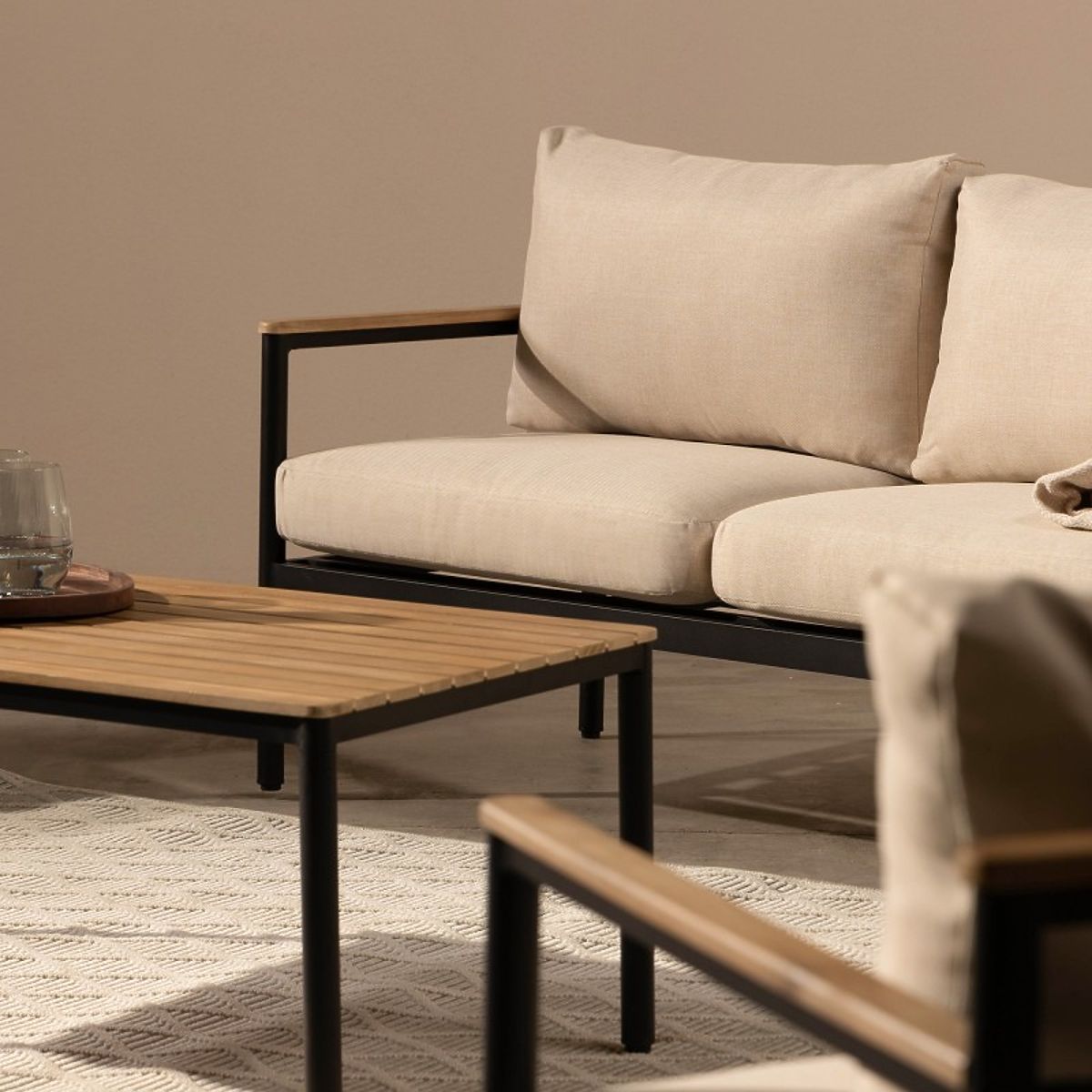 Ensemble de jardin moderne en aluminium et bois d'acacia, beige/noir. .. plus