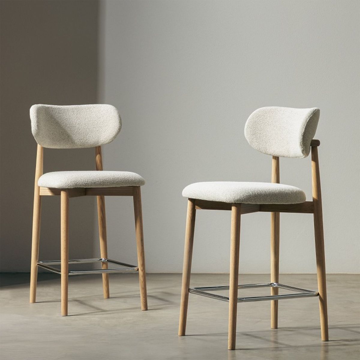 Tabouret de bar Amalfi avec revêtement crème et pieds en chêne. .. plus