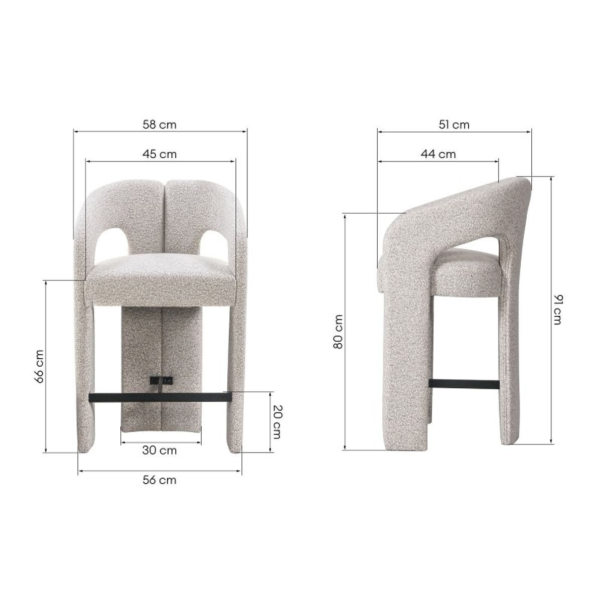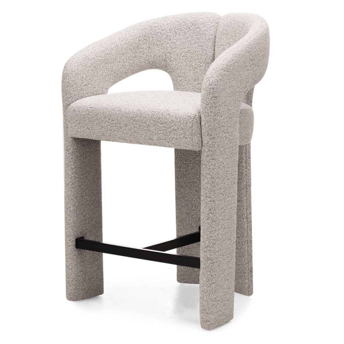 Chaise de bar Castelo avec tissu gris-beige et accoudoirs confortables. .. plus