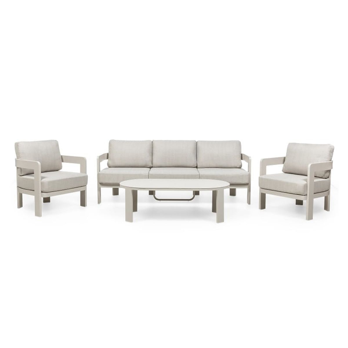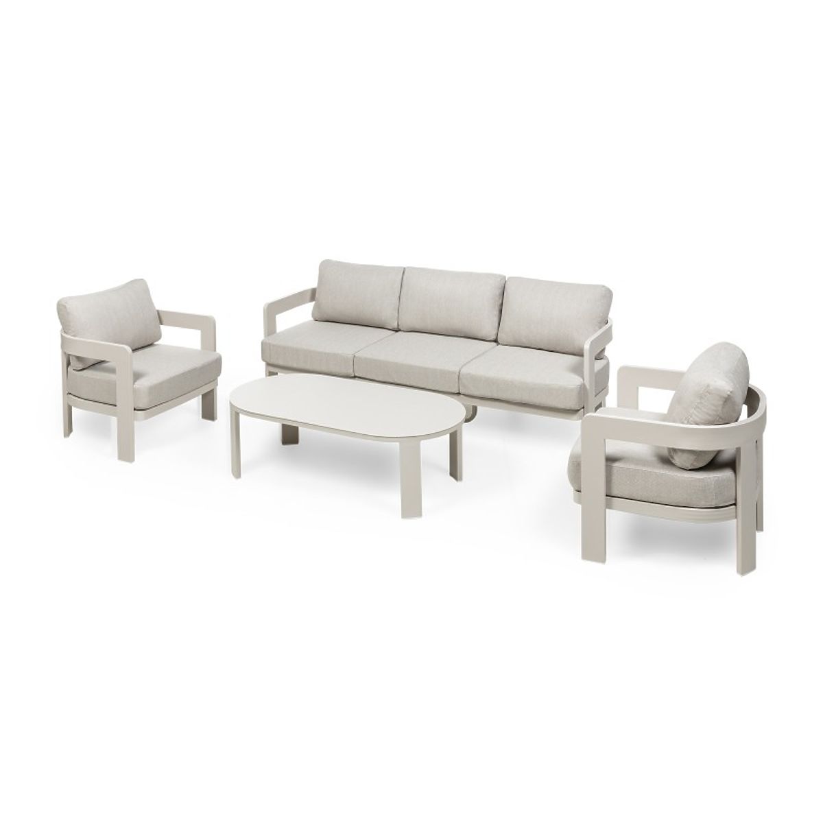 Ensemble de jardin Japori en aluminium beige clair avec formes arrondies. .. plus
