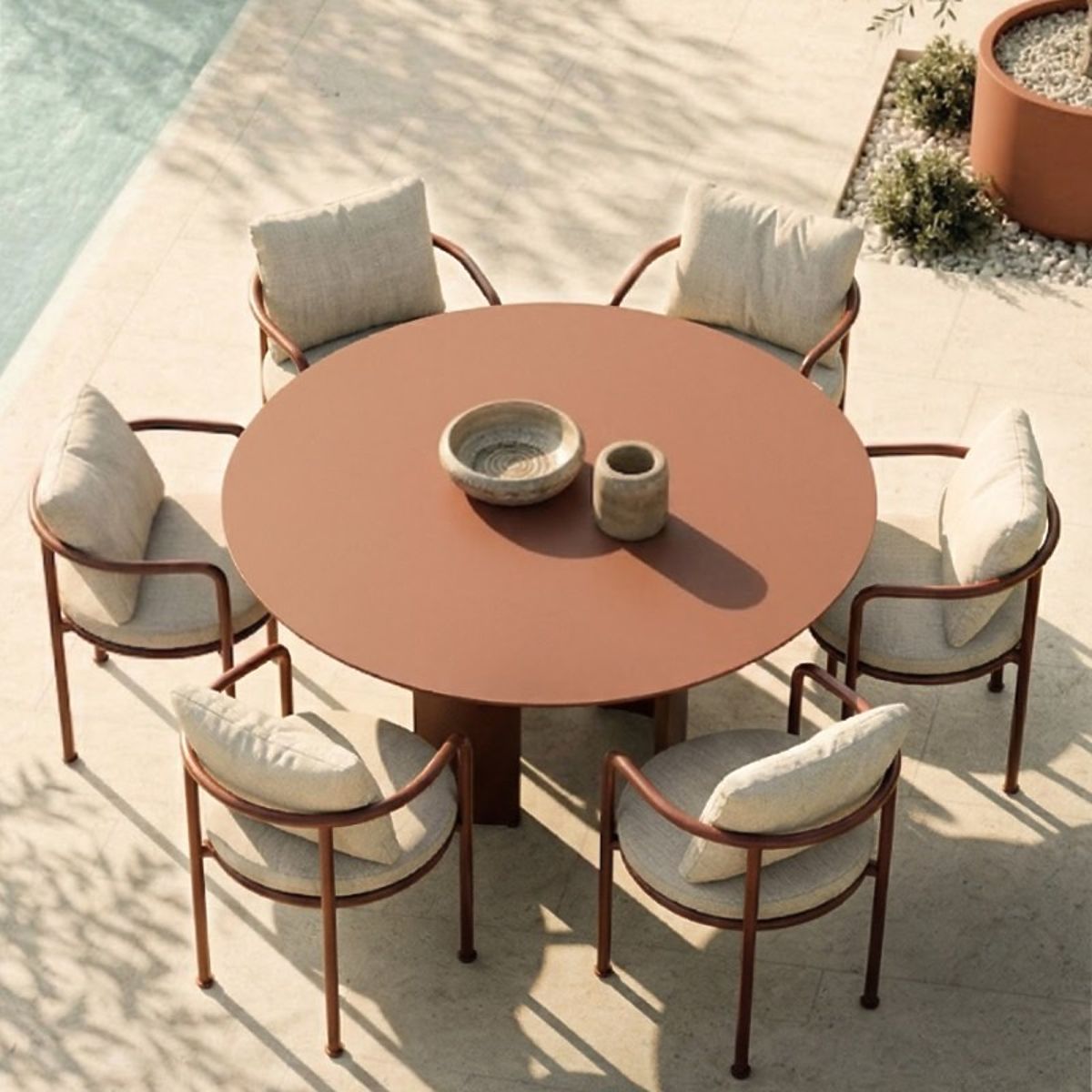 Lukahome.fr » mobilier de jardin / chaises de jardin / Chaise de jardin Amarello en aluminium, beige clair/marron bordeaux arrondie