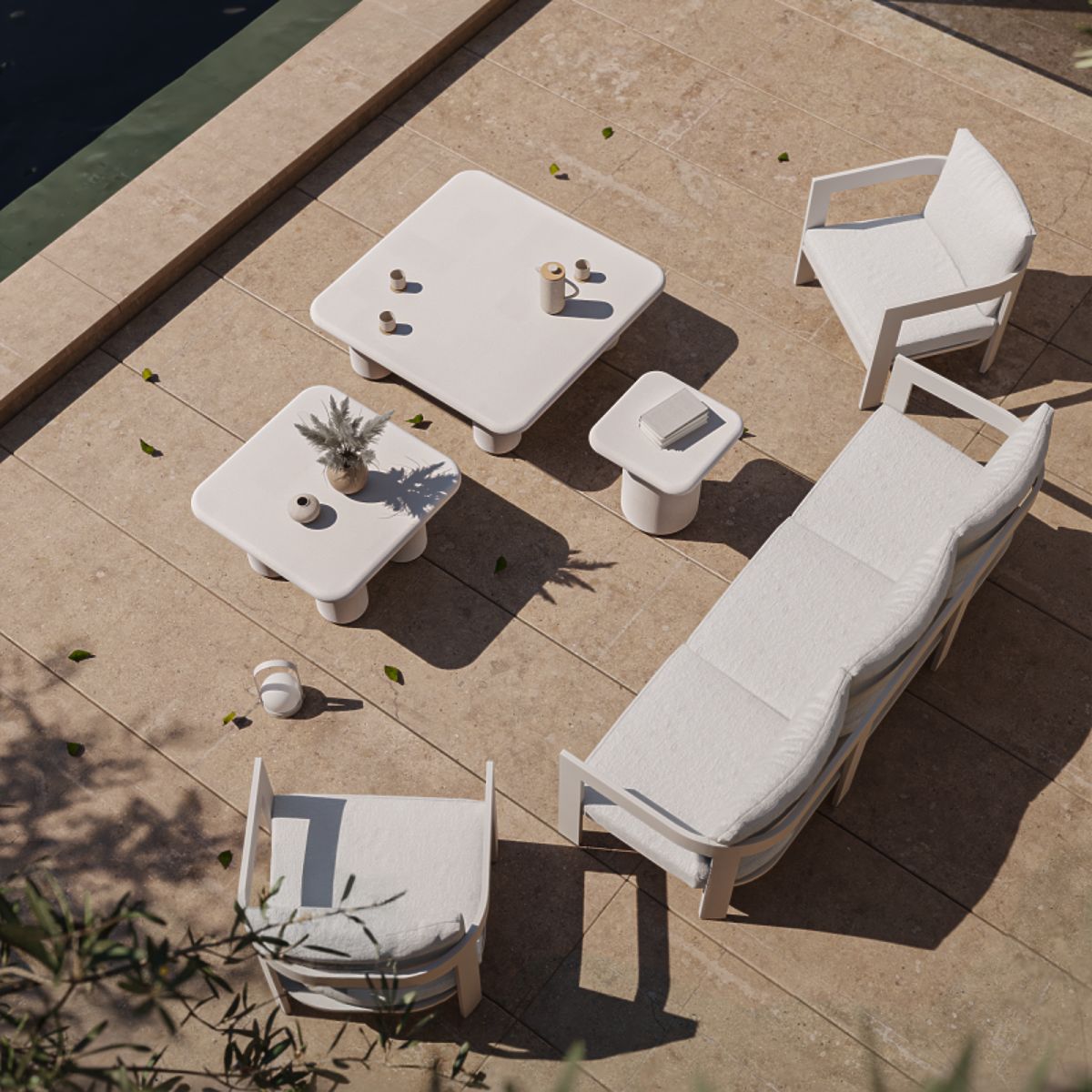 Table de jardin carrée en ciment beige clair de 70 cm. .. plus