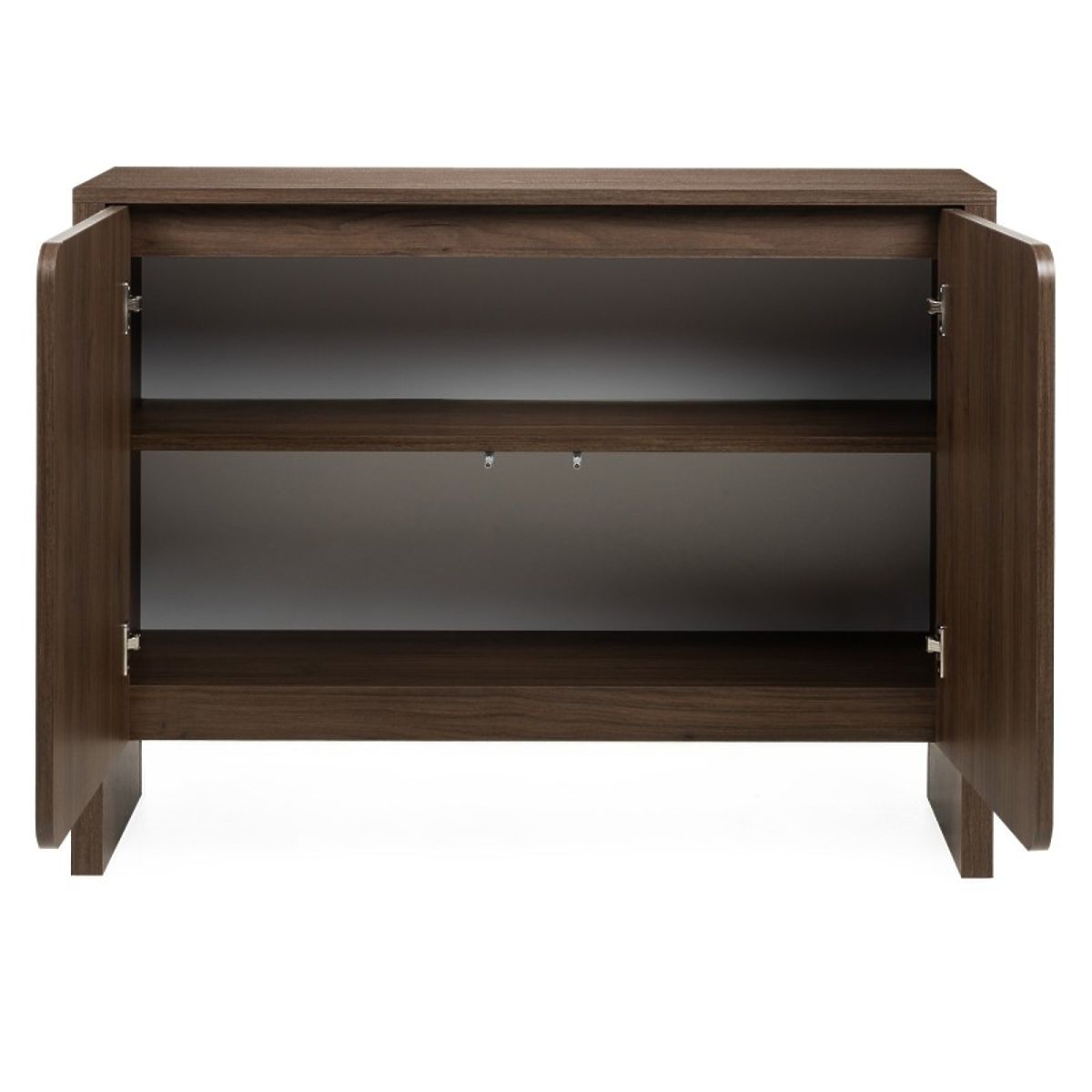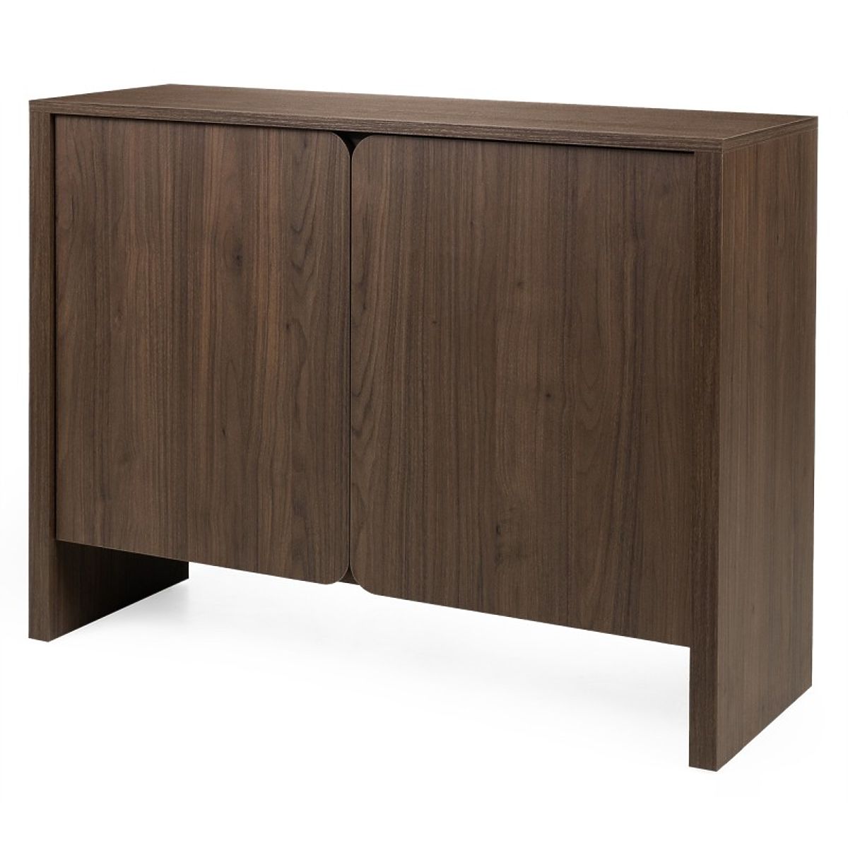 Commode deux portes Moku avec surfaces avant arrondies en noyer villa. .. plus