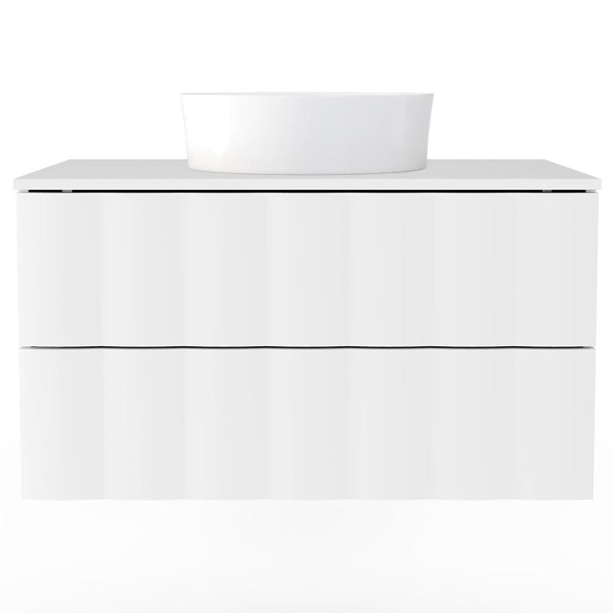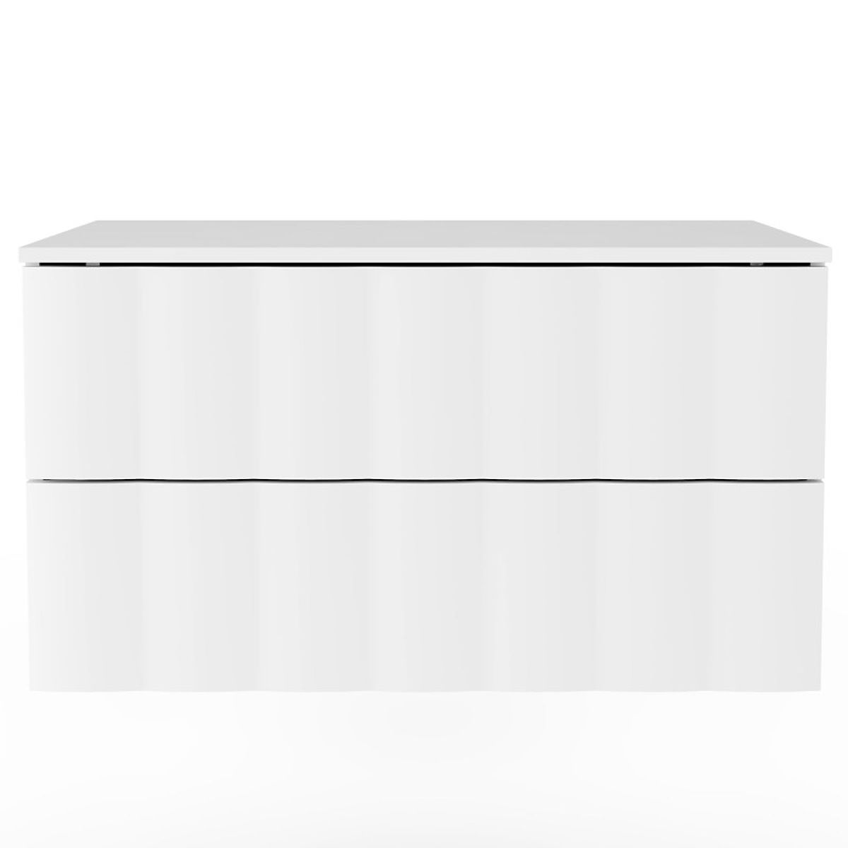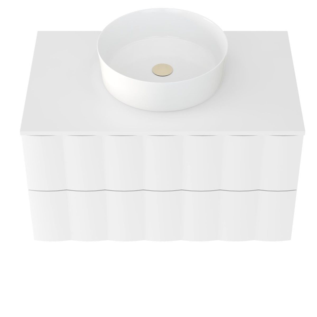 Meuble sous lavabo blanc avec panneau avant ondulé et tiroirs silencieux. .. plus