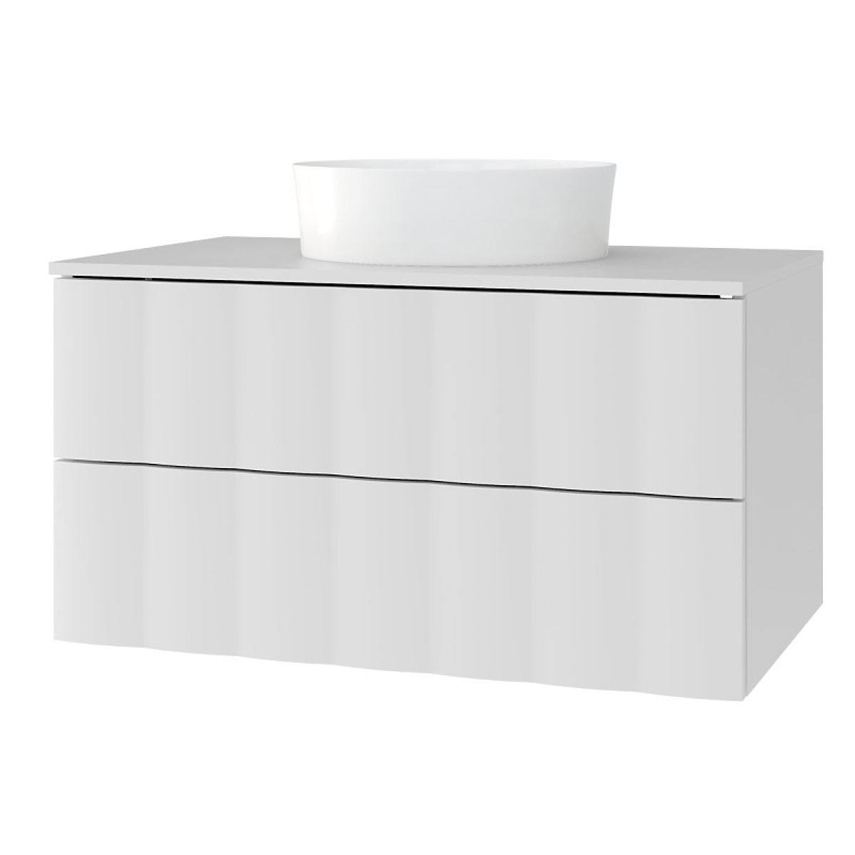 Le meuble Grita est l'essence de l'élégance moderne dans votre salle de bain. Son panneau avant ondulé lui confère un caractère unique, et des solutions pratiques telles que le système push to open et deux tiroirs à fermeture silencieuse garantissent un confort d'utilisation.