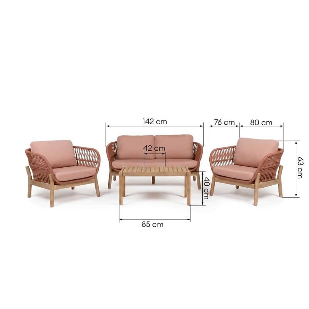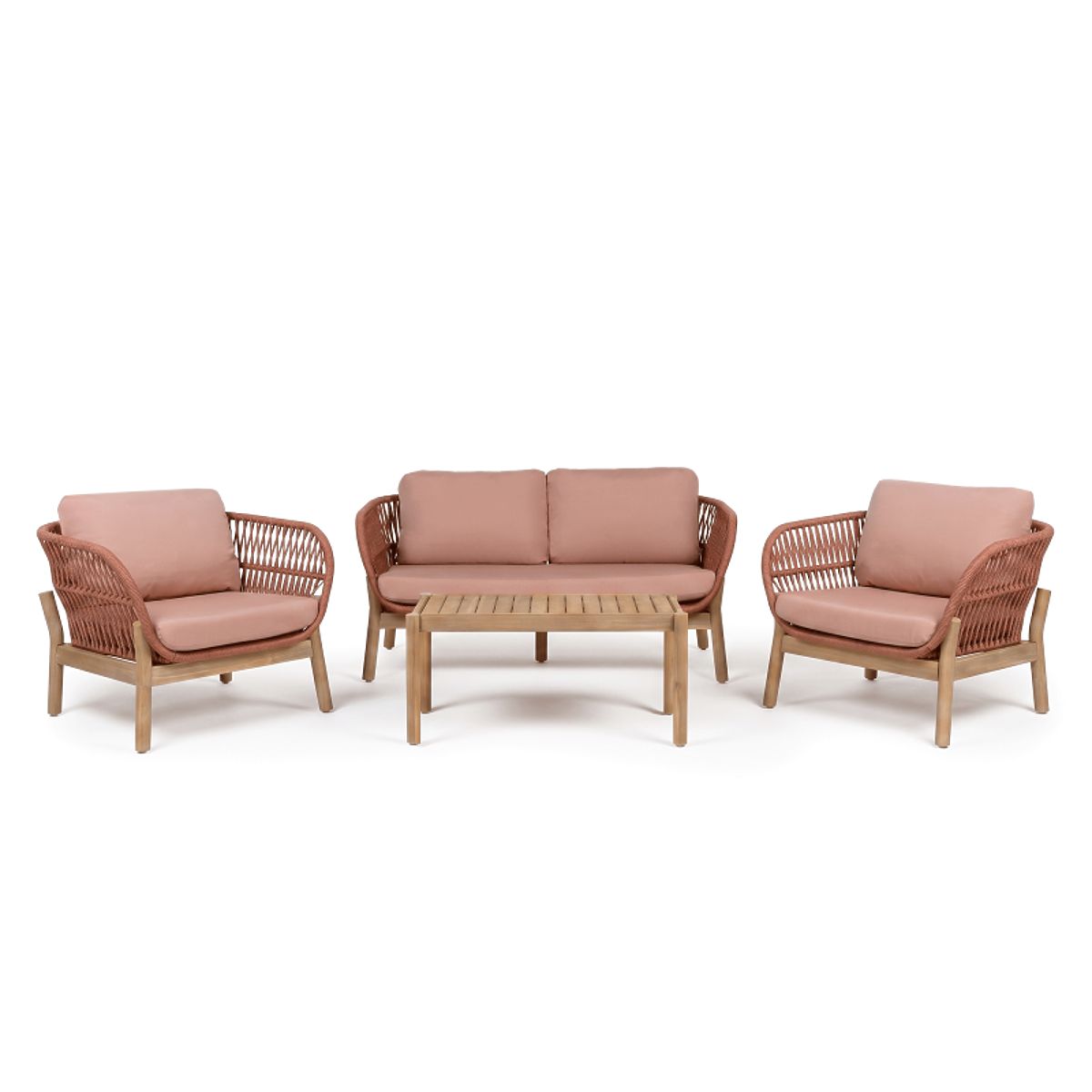 Apportez le confort du salon au jardin avec l'ensemble Fiorentino. Un canapé deux places, deux fauteuils et une table rectangulaire forment un ensemble harmonieux, idéal pour des après-midis tranquilles en plein air. Les éléments tressés en corde résistante et les lignes arrondies représentent un accent intéressant, tandis que le bois d'acacia, qui constitue la base de l'ensemble, non seulement ajoute un charme naturel, mais garantit également solidité et durabilité pour de nombreuses saisons.