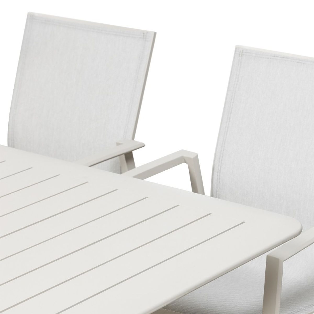 Le Canelli est un ensemble de jardin conçu pour les espaces modernes et le confort. La structure en aluminium dans une teinte beige clair allie élégance et durabilité, et s'adapte parfaitement aux conditions météorologiques changeantes. Grâce à la fonction extensible de la table, vous pouvez facilement préparer un espace pour des réunions plus importantes et des moments partagés en plein air.