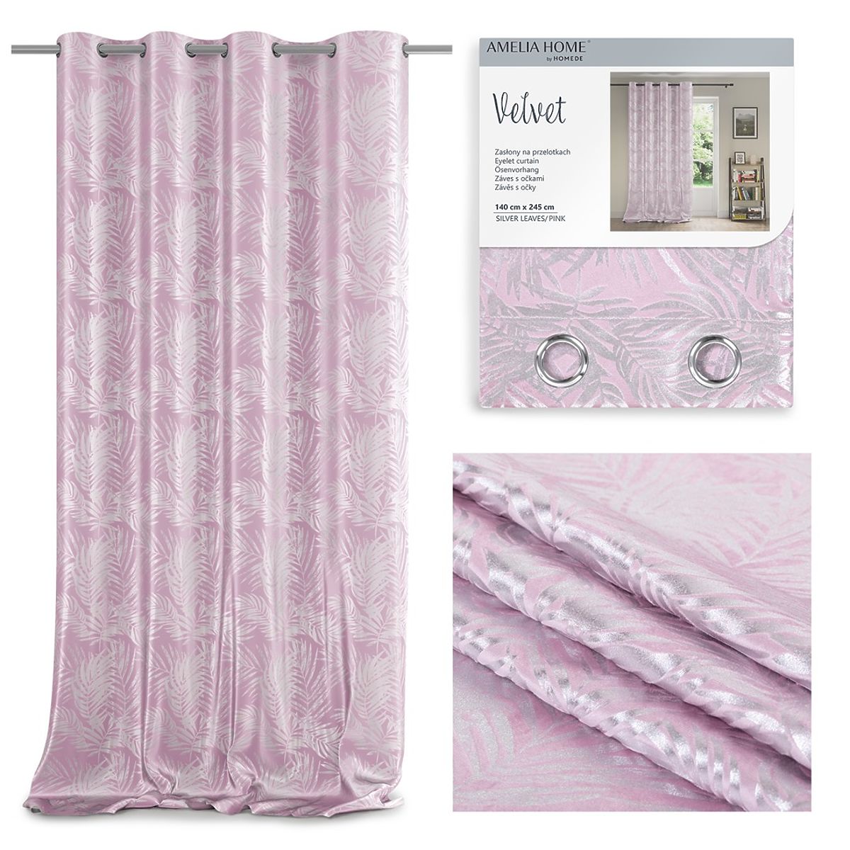 CURT/AH/VELVET/SILVERLEAVES/POWDERPINK/140X245