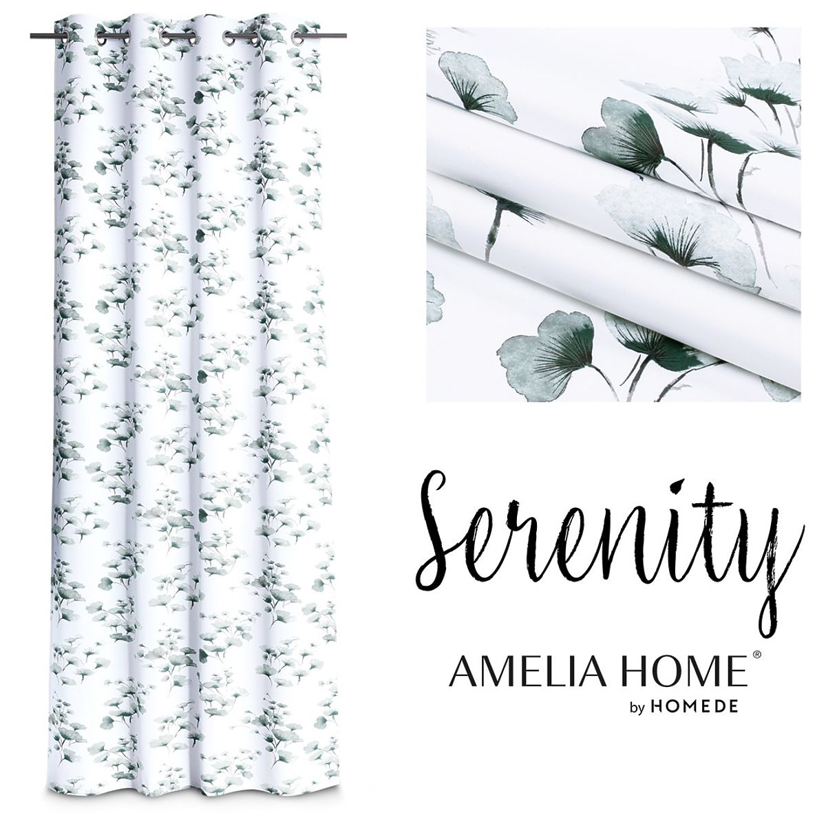 Lukahome.fr » Rideaux et rideaux / Rideaux / Rideau SERENITY couleur blanche motif végétal imprimé style classique œillets métalliques argentés