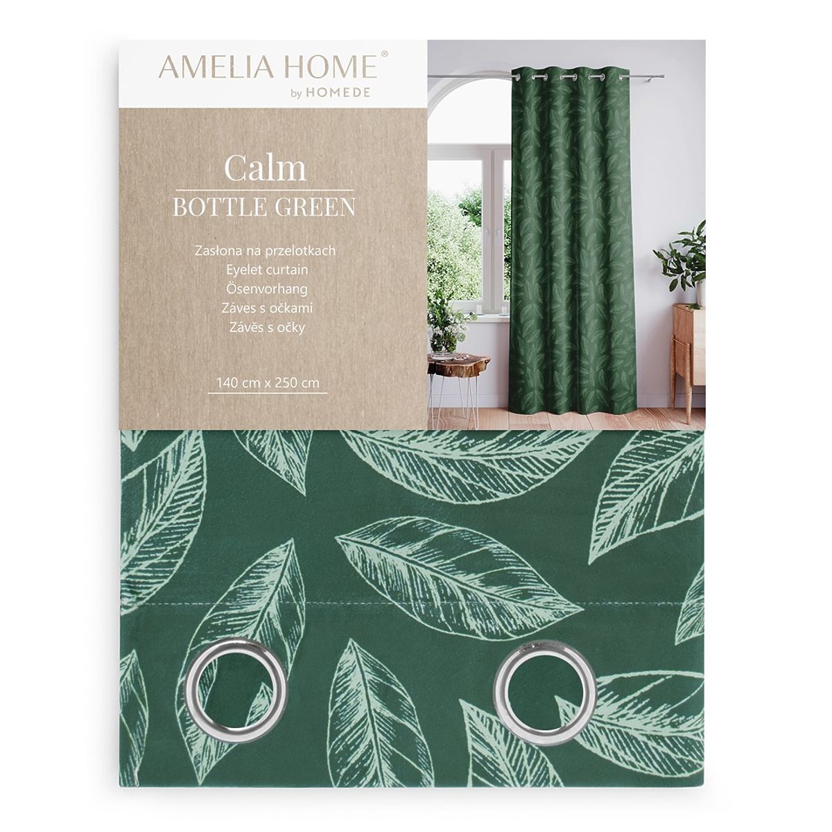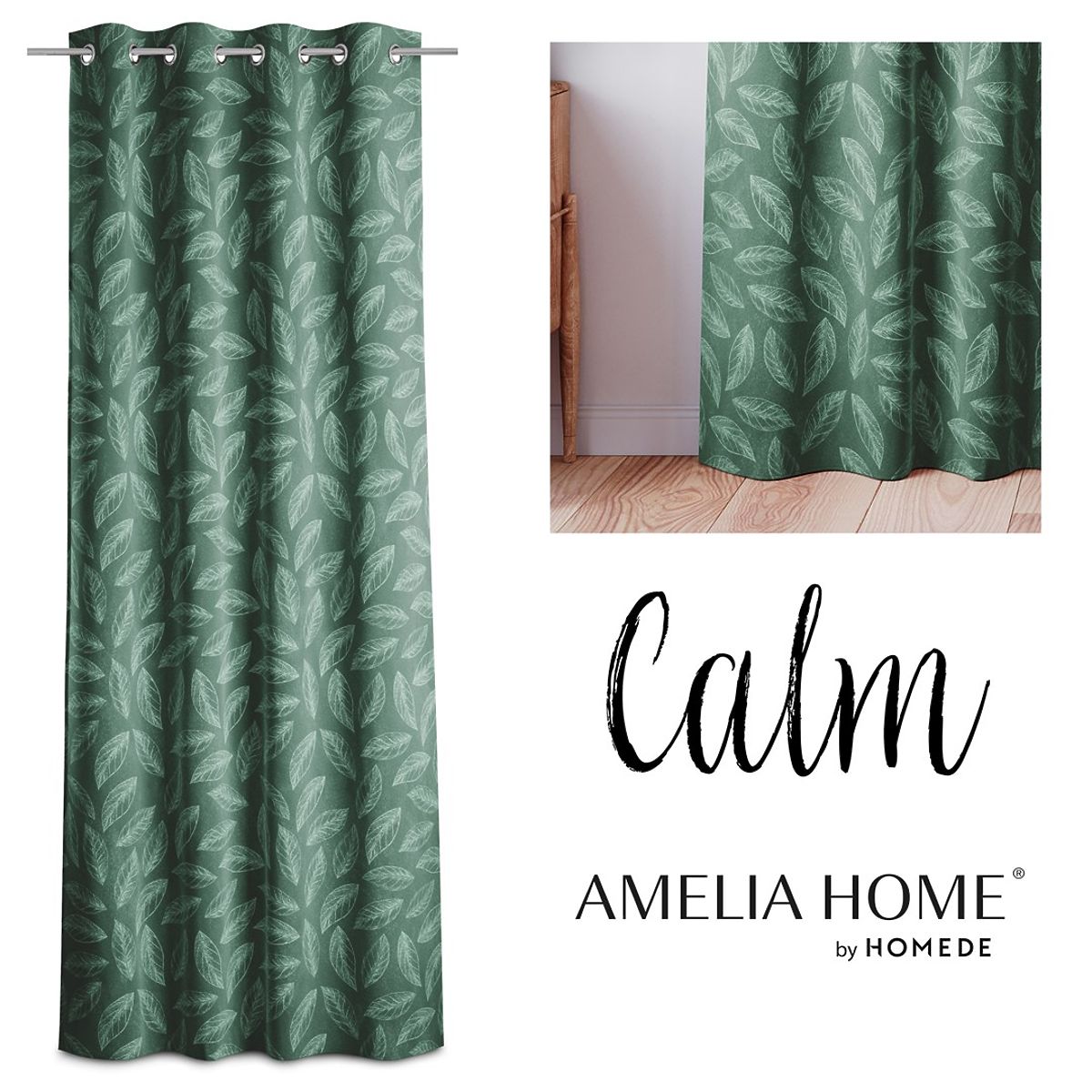 Lukahome.fr » Rideaux et rideaux / Rideaux / Rideau CALM couleur vert bouteille motif végétal imprimé style classique œillets métalliques argenté