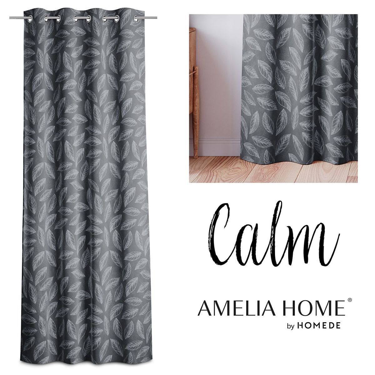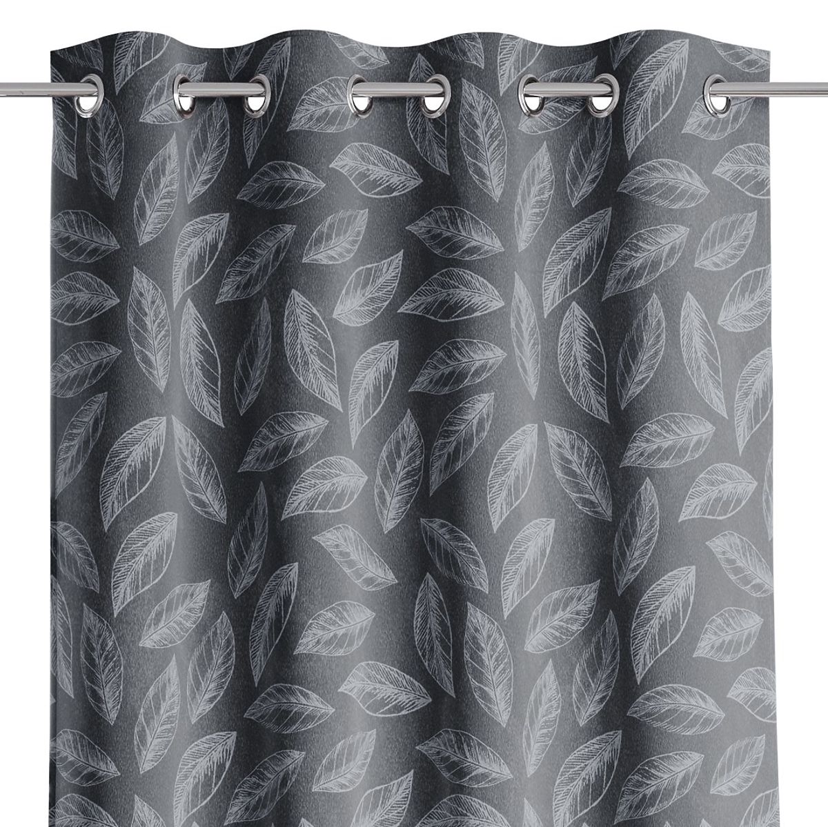 Lukahome.fr » Rideaux et rideaux / Rideaux / Rideau CALM couleur graphite motif végétal imprimé style classique œillets métalliques argentés