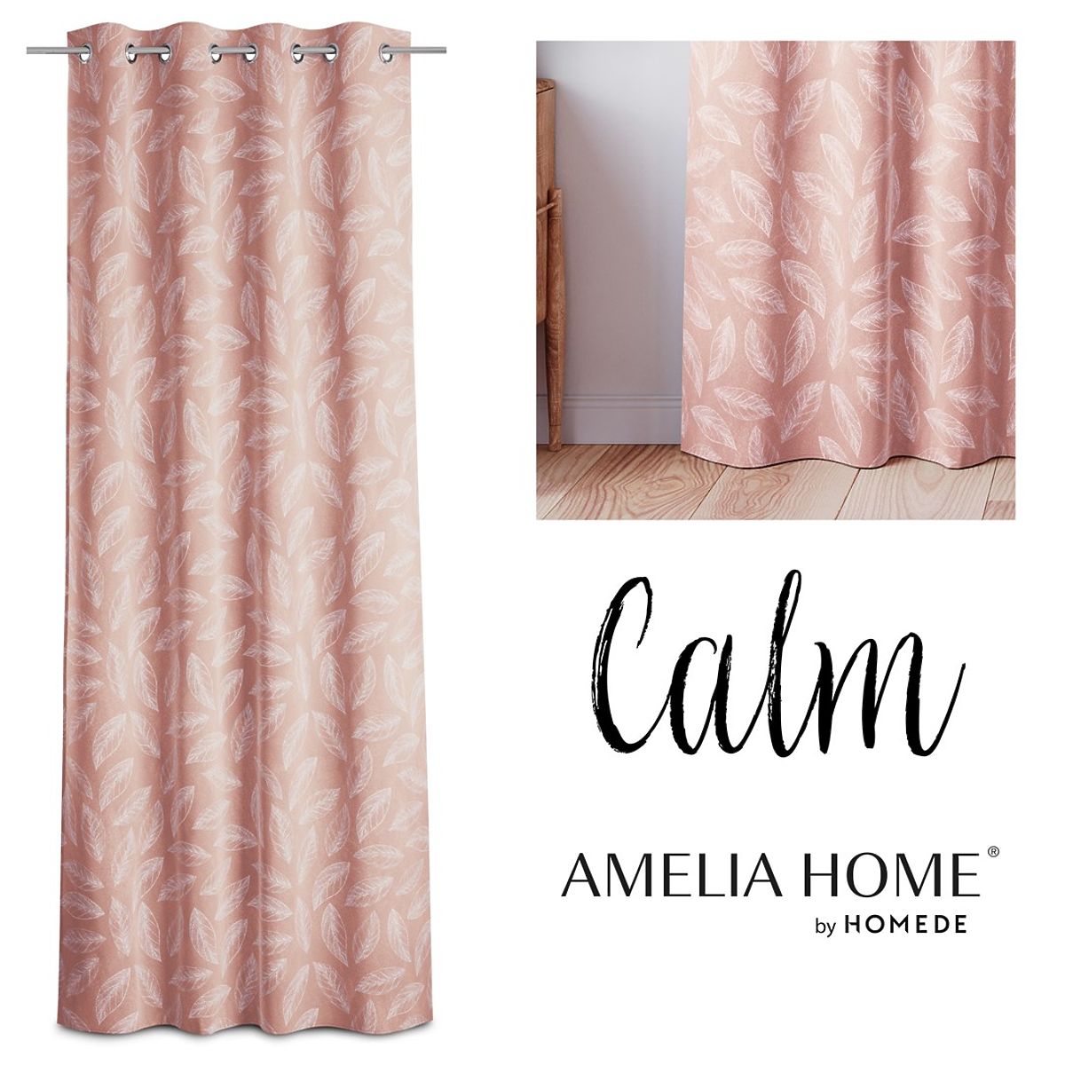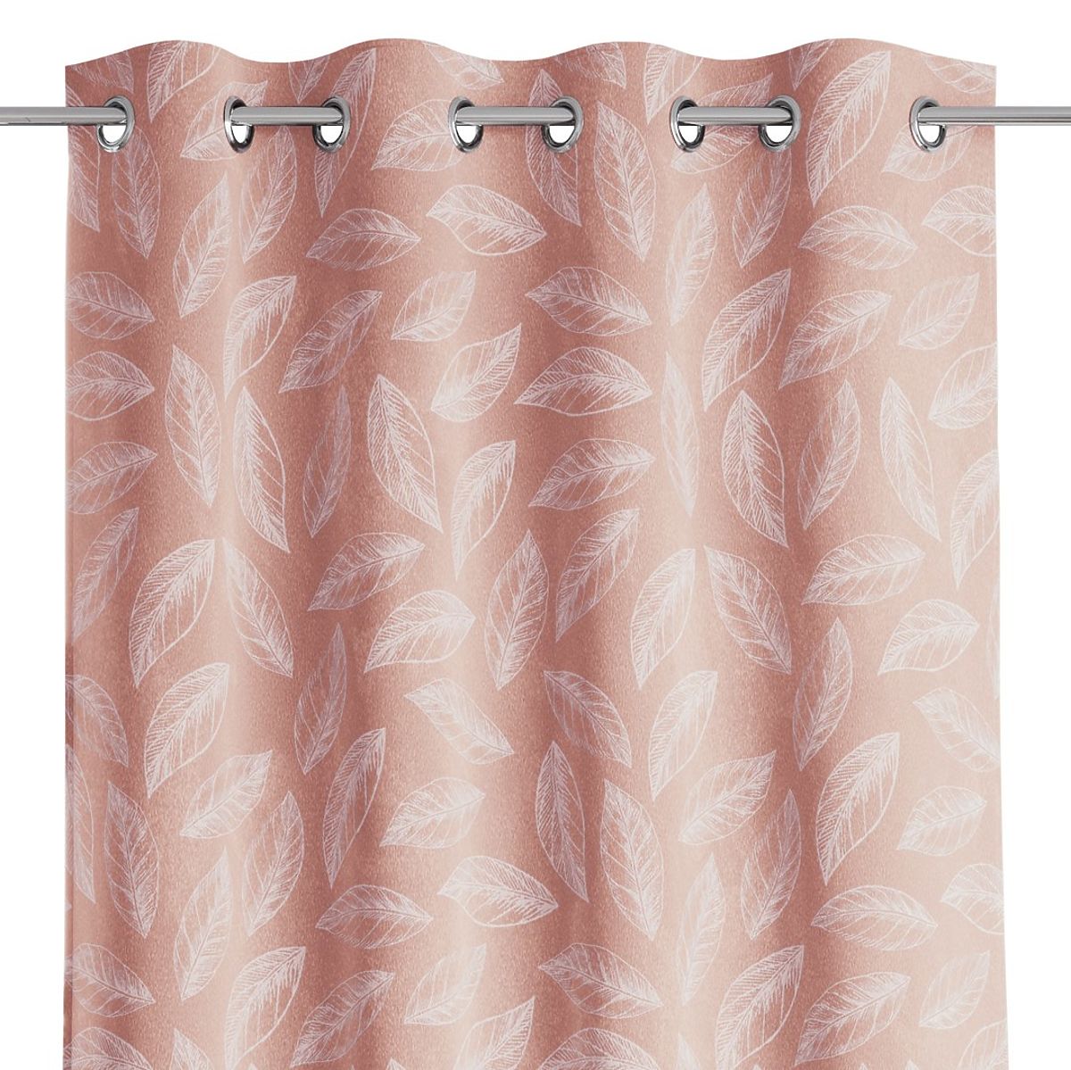 Lukahome.fr » Rideaux et rideaux / Rideaux / Rideau CALM couleur rose poudré motif végétal imprimé style classique œillets métalliques argentés