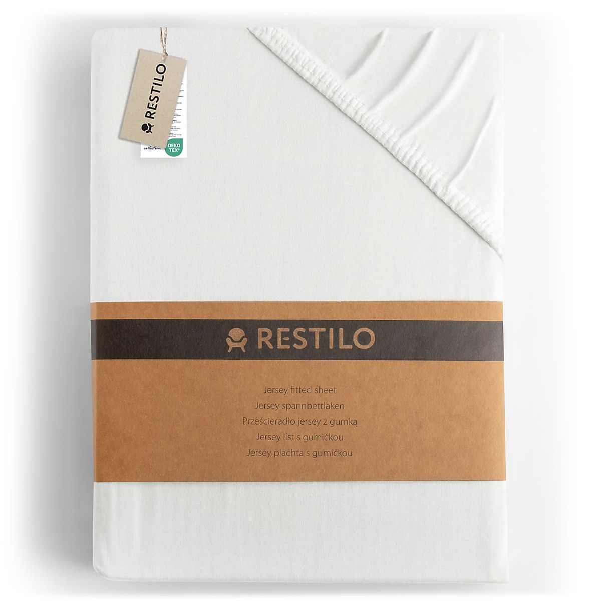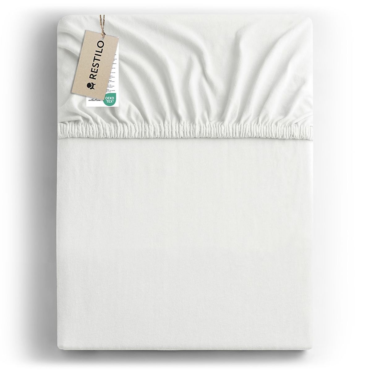 Drap housse blanc en jersey 100% coton, dimensions 180-200x200 cm. .. plus